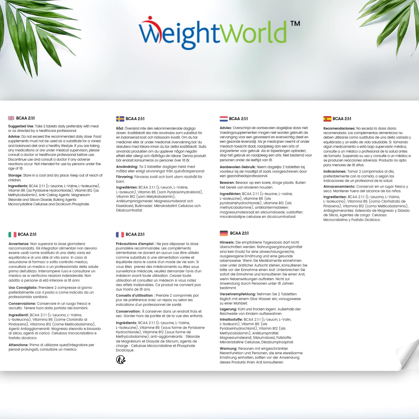 • Why WeightWorld's BCAA Tablets? - Looking for a perfect pre workout supplement to strengthen your fitness regime? Our BCAA supplement is balanced perfectly with an optimum ratio of branched chain amino acids. At a ratio of 2:1:1, you will get 500mg L-leucine, 250mg L-Isoleucine, and 250mg L-Valine with the added benefits of Vitamins B6 and B12. Unlike different amino ratios mentioned by various brands, the 2:1:1 ratio is evidence-backed and delivers all of BCAAs benefits.