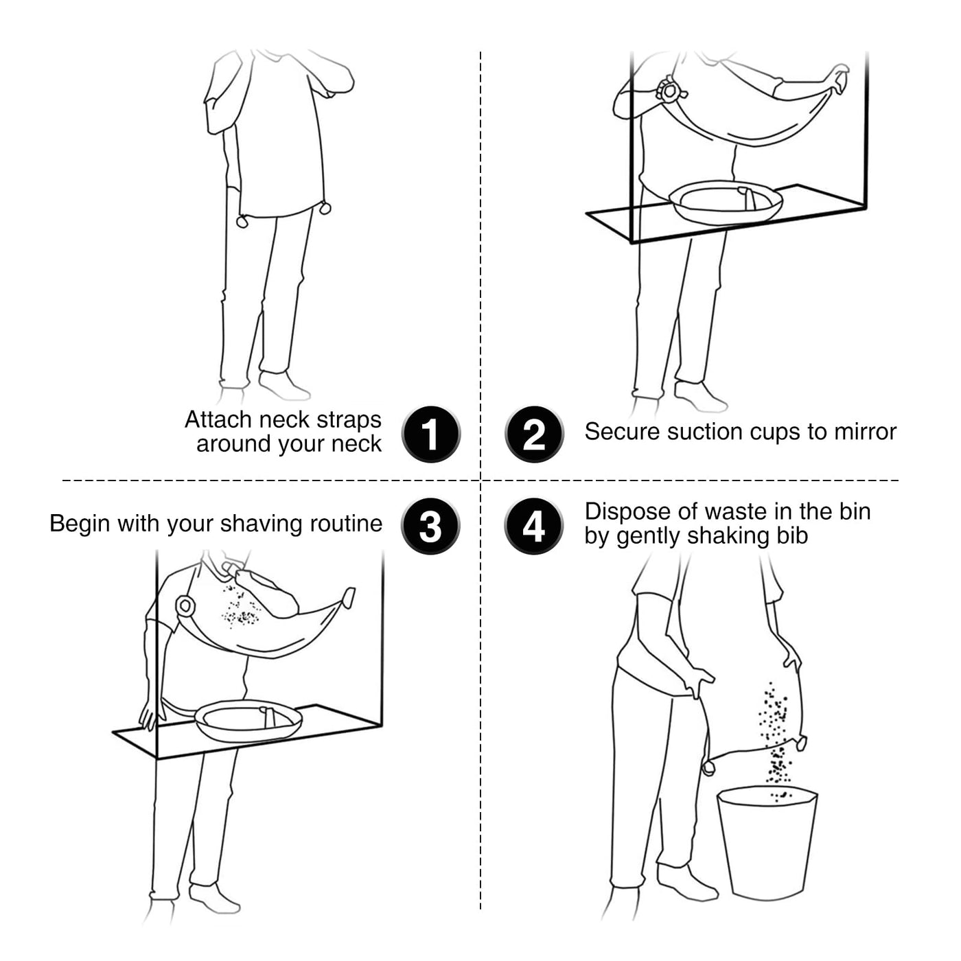 - Easy to Use: You can simply attach the bibs for beard shaving to the neck band and then attach them to the suction cups on the mirror, After shaving, remove the bib from the suction cup and rub the surface in the basket for cleaning, Can be folded into a very small size and is easy to store, Quickly wash and dry, durable in use