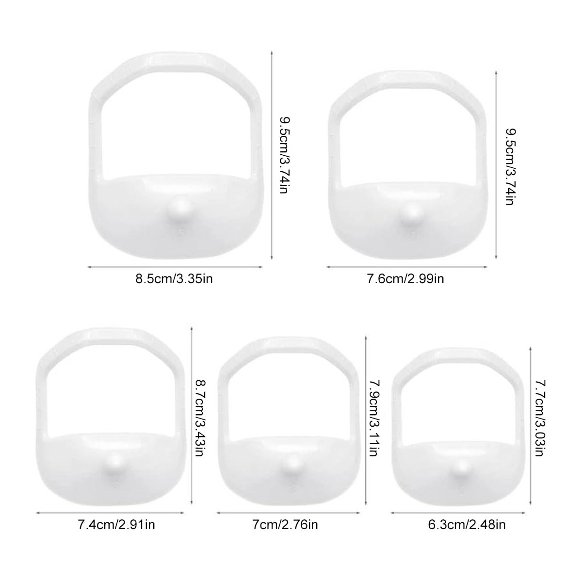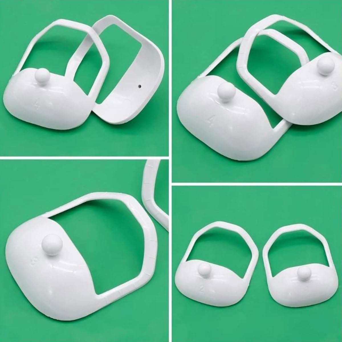 Product descriptions: Special feature: The beard template consists of High quality plastic, which is sturdy and durable, not easy to break or to be damaged and can be used for a long time. The beard template Comes with a short cylindrical handle that helps you use the tool easier to grip and attach it to your face during use. Specifications Material: plastic Color: white Size: 6.3 x 7.7 cm, 7 x 7.9 cm, 7.4 x 8.7 cm, 7.6 x 9.5 cm, 8.5 x 9.5 cm Packing list: 5 x beard trimmer shaving stencil Note: 1. Due to the different light and Due to monitor settings, the color of the item may vary slightly from the image differ. 2. Please allow slight size differences due to different manual measurements.