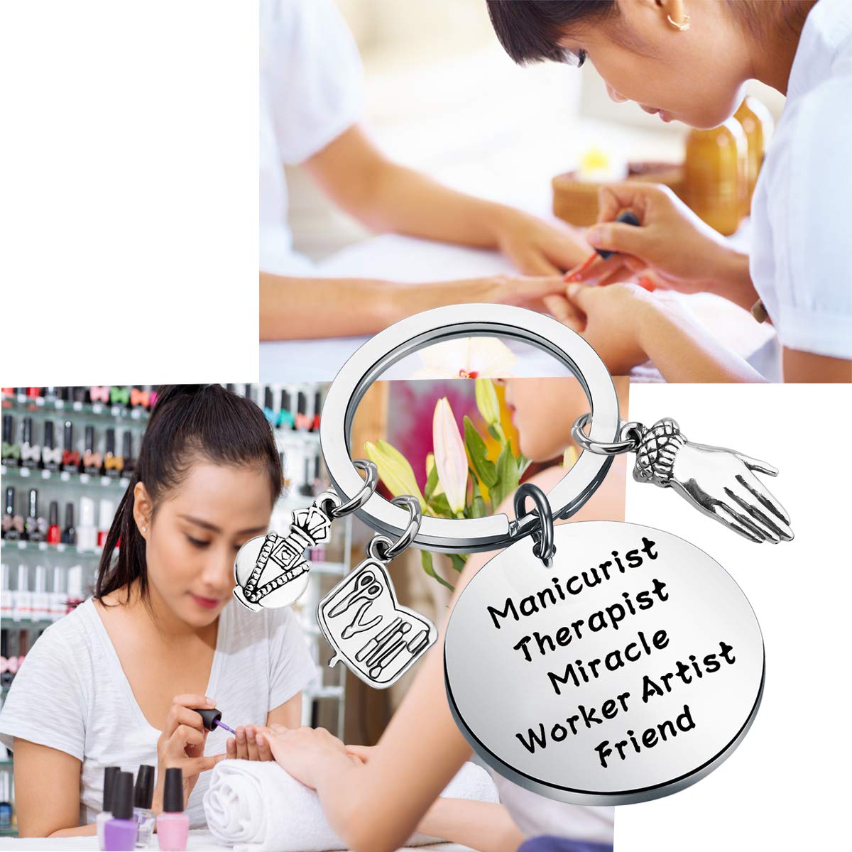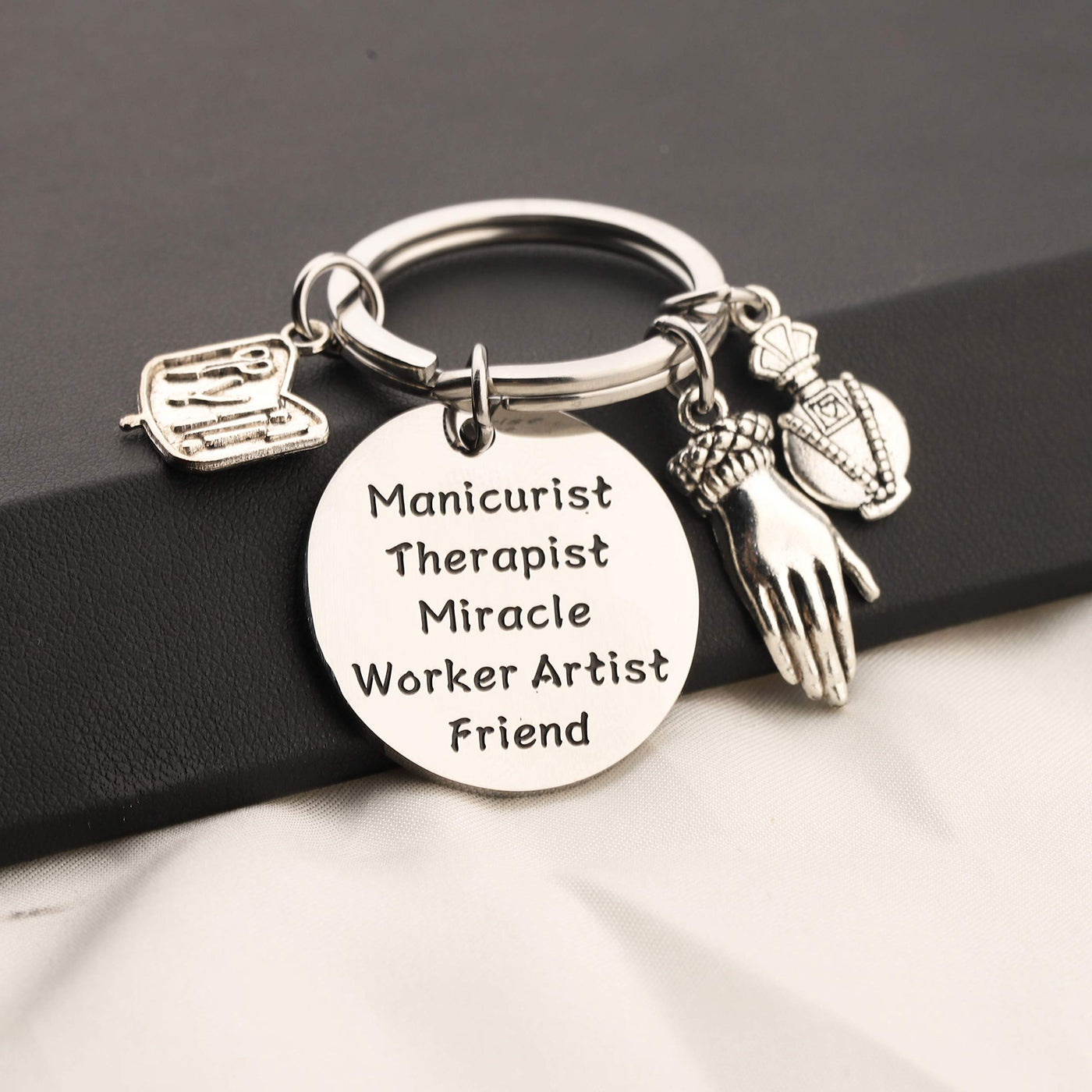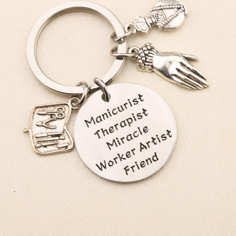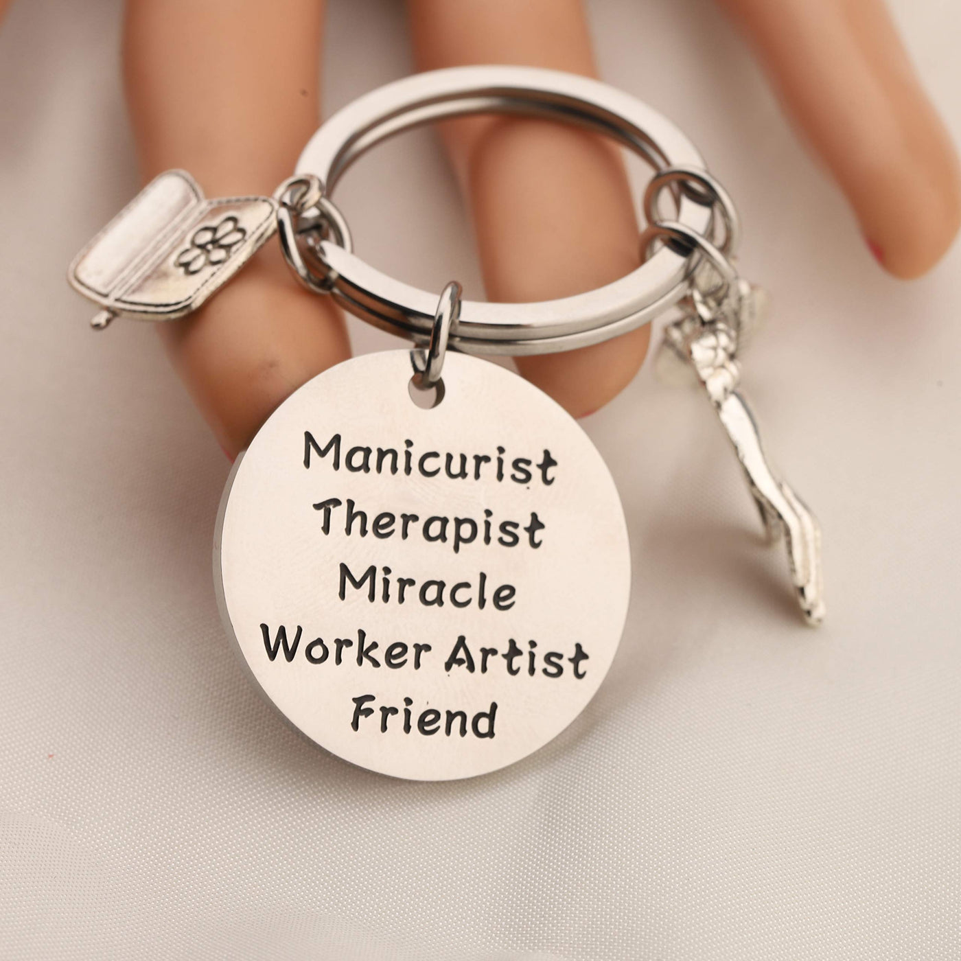 - This keychain is made for manicurist or nail artist, stamped with Manicurist Therapist Miracle Worker Artist Friend. Perfect gift for your manicurist friend.