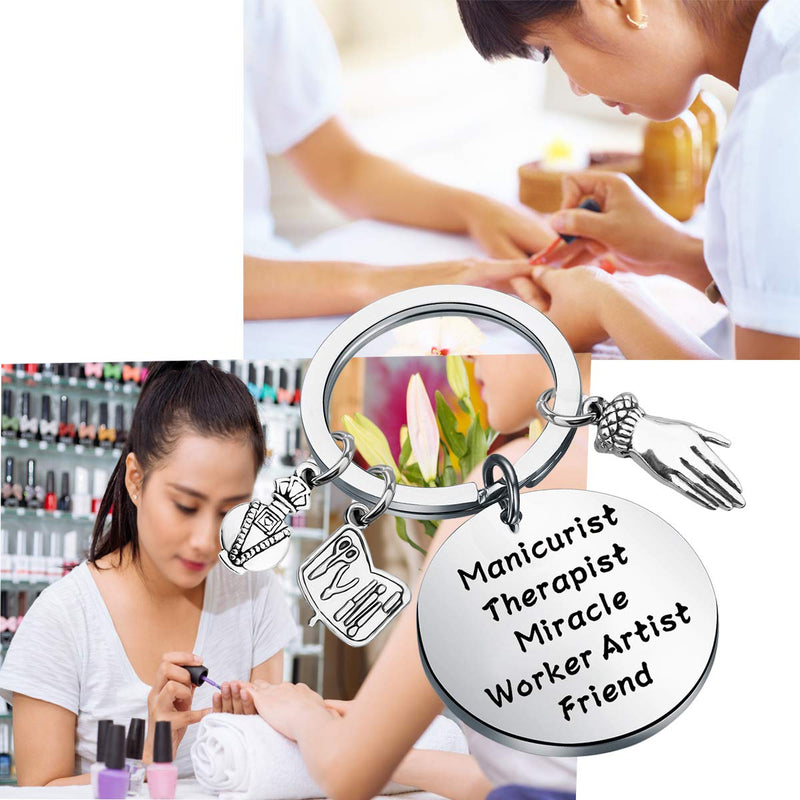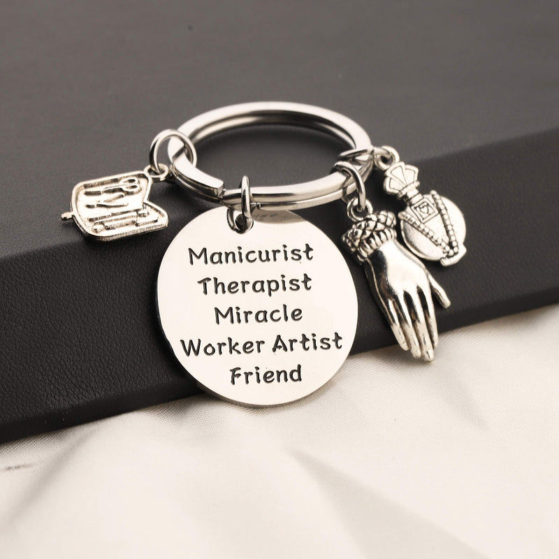 - Manicurist as well as nail artist is a noble profession. They do their best to make people look better. This manicurist keychain gift really show your appreciation about your manicurist friends or relatives.