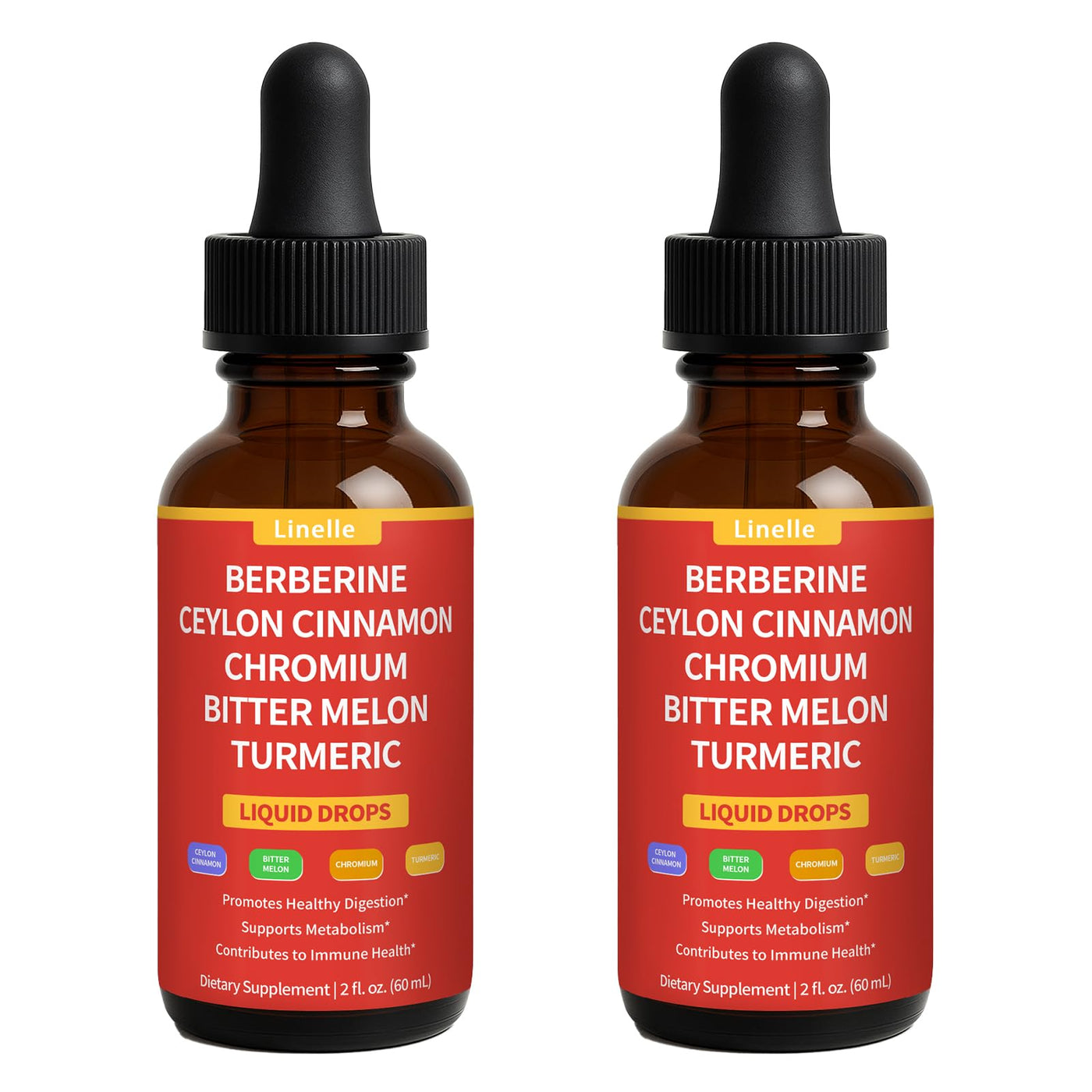 Berberine Drops with Ceylon Cinnamon, Bitter Melon Extract, Gymnema, Chromium, Turmeric, Organic Panax Ginseng, Moringa (2) 2