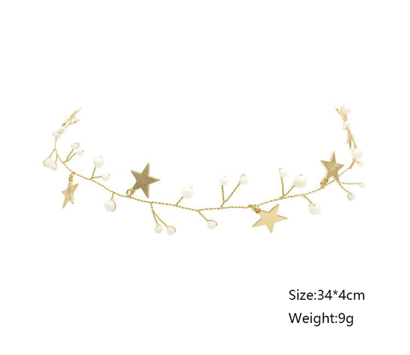 BERYUAN Sequins Pearl Star Headband Earrings Set Gold Wedding Hair Accessories Tassel Star Pendant Jewelry for Her Gift for Women Girls (Gold)