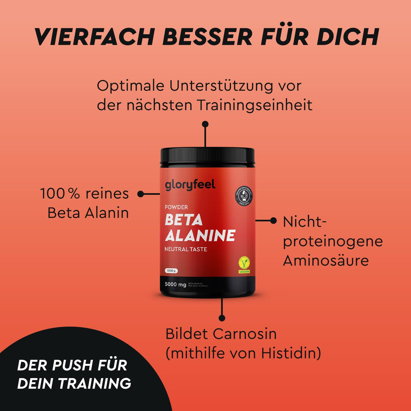 - 100% VEGAN & WITHOUT GENETIC ENGINEERING OR ADDITIVES - Our high-quality Beta Alanine powder is produced without any additives such as release agents, flavors, dyes, stabilizers, fillers and of course also without genetic engineering. Guaranteed vegan, lactose-free, gluten-free and no preservatives.