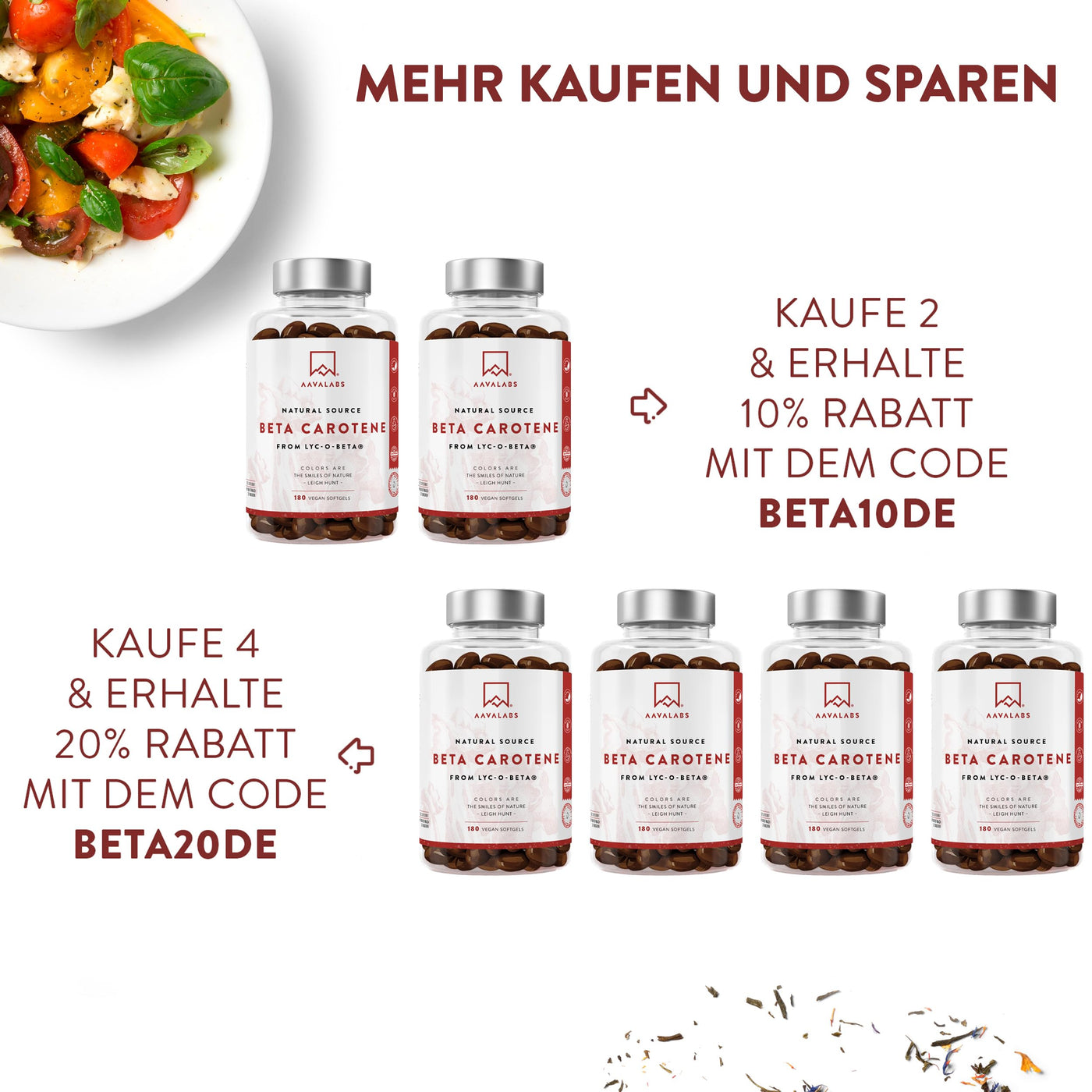 - OUR QUALITY PROMISE - AAVALABS nutritional supplements are produced under strict quality control. You will receive beta carotene tablets that have been tested for purity and contain trusted ingredients. Are you not satisfied with our can of high-dose brown carotene capsules? Just let us know. We believe in transparency and our customer service team is always available to answer any questions you may have about our products