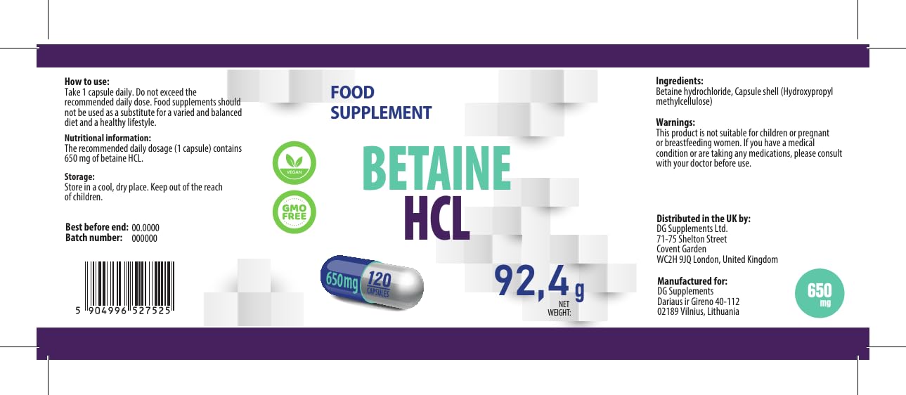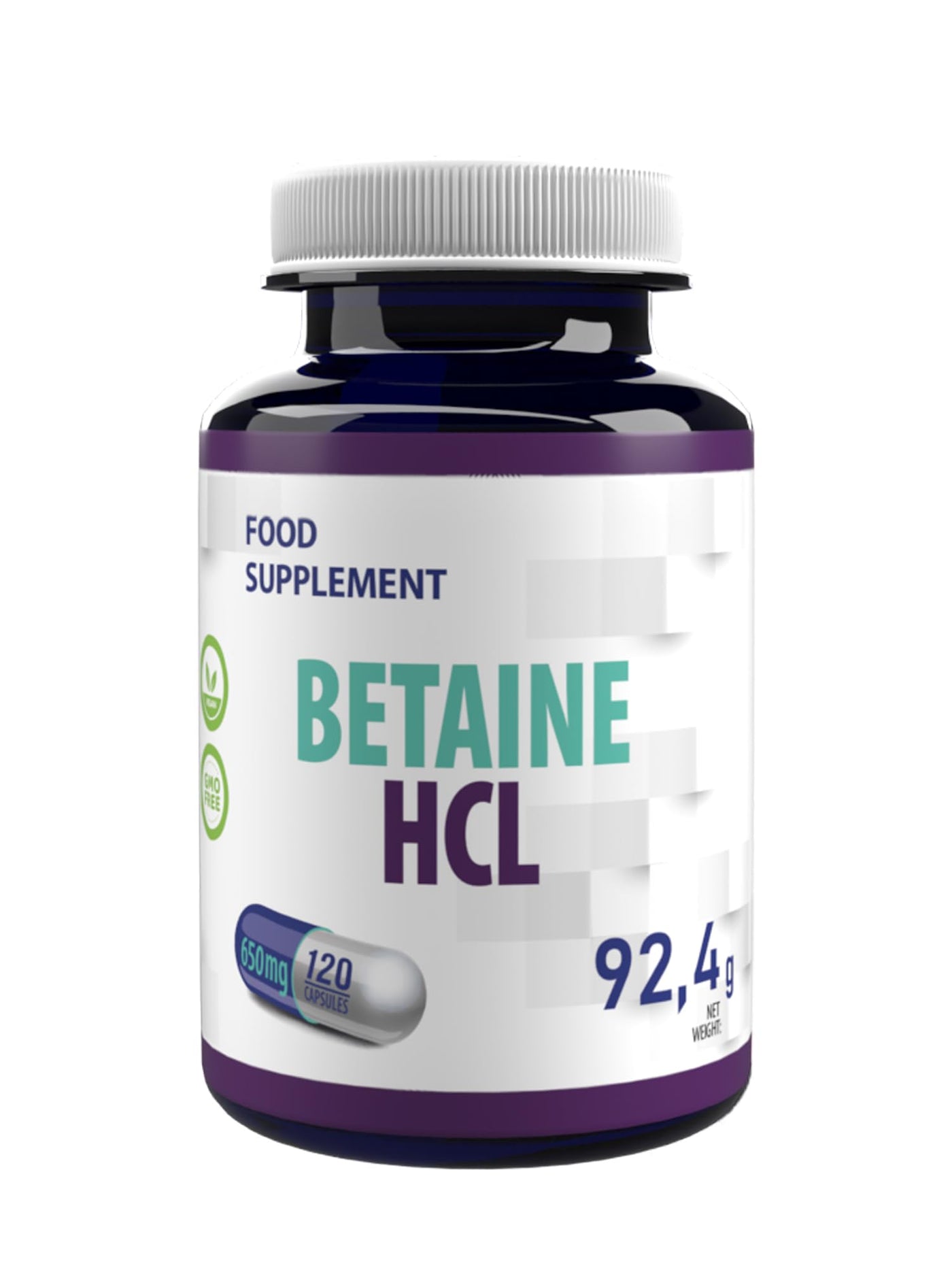 Betaine HCL 650mg 120 vegan capsules, laboratory tested, high dosage
