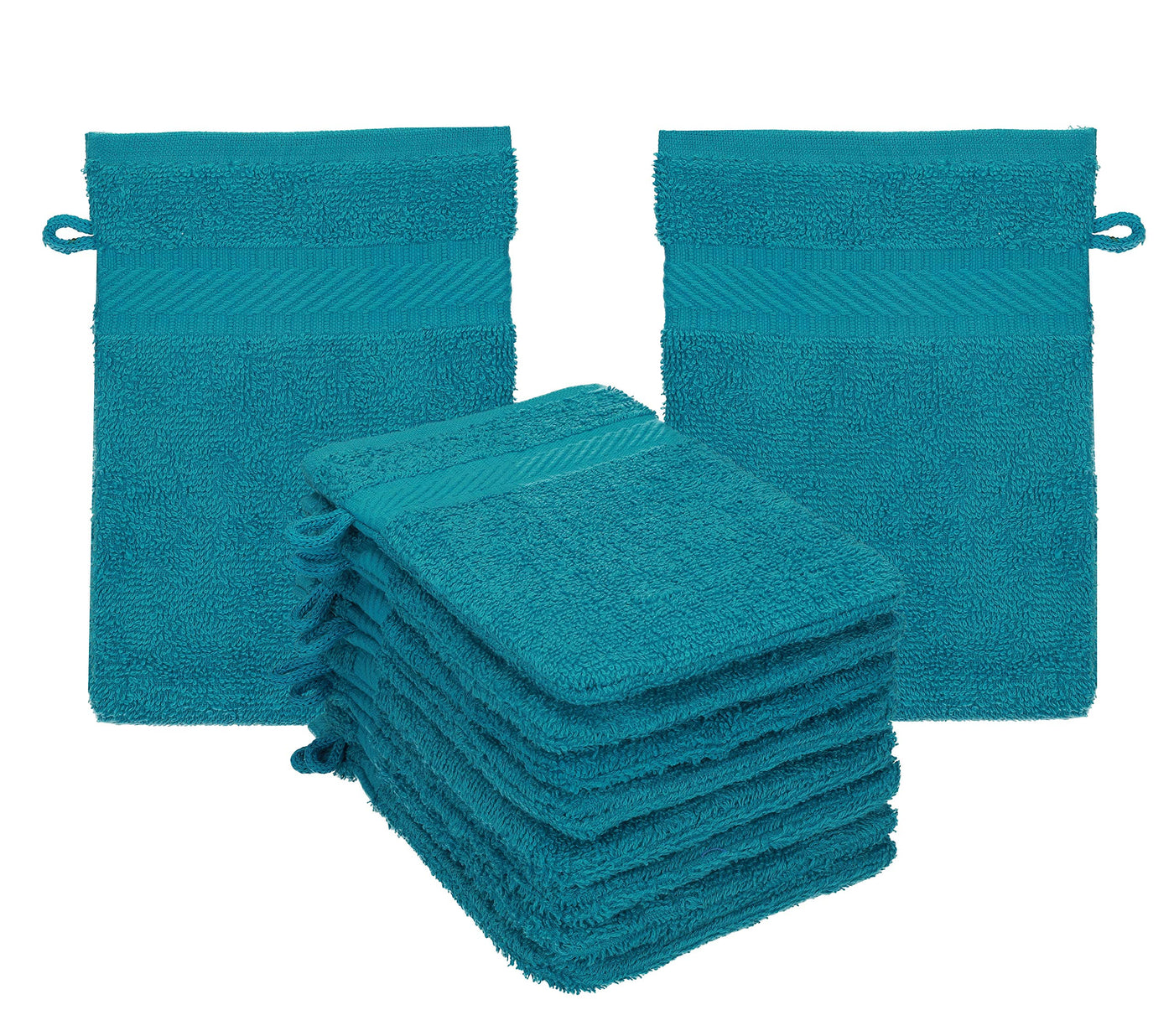 Betz Pack of 10 Washing Gloves Terry Cloth Washing Gloves Palermo 100% Cotton Washcloth Set Size 16 x 21 cm (Petrol) 10x Washing Gloves Petrol