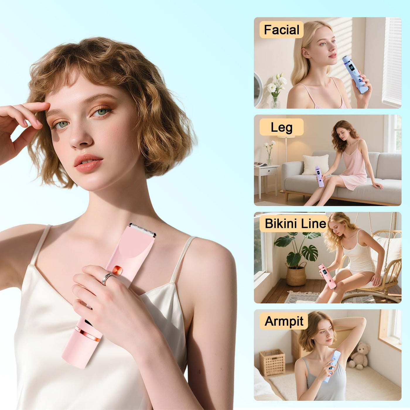 - Dual-Head Versatility: Easily switch between the ultra-sharp ceramic blade for smooth hair removal and the precision trimmer for detailed styling. This bikini trimmer for women works perfectly as a facial hair trimmer, underarm groomer, and all-over electric shaver for women, making it your one-stop tool for delicate areas.