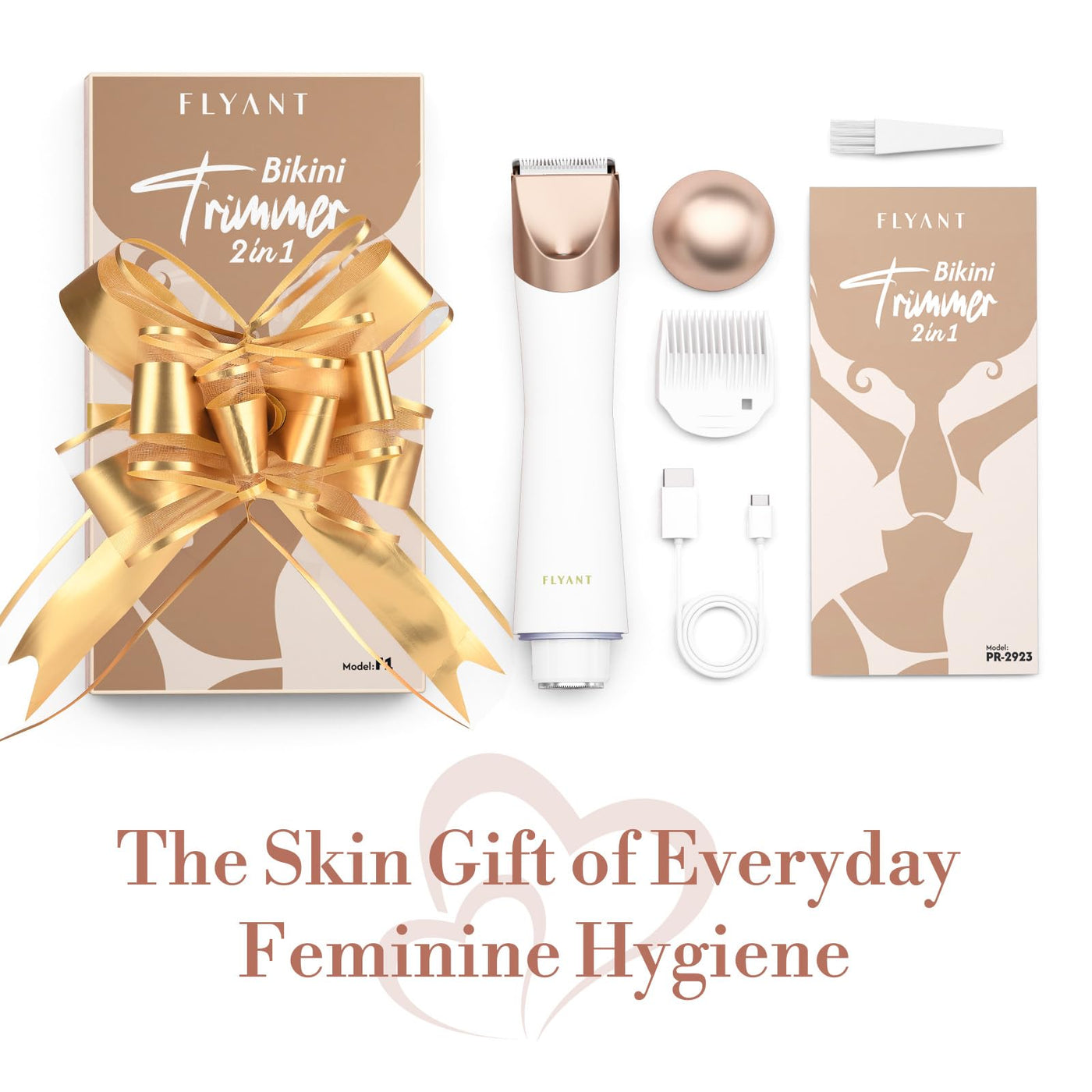 Bikini Trimmer for Women, 2 in 1 Electric Shaver for Women, Pubic Hair Trimmer Waterproof IPX7 with LED, Bikini Razor for Leg Arm Underarm Bikini Area, Pull Bows Gift Box for Friends (Shell White)