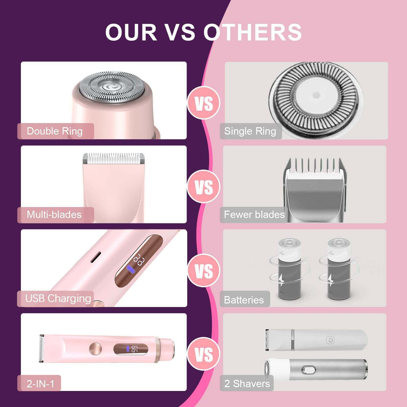 - Elegant Gift-Ready Women's ShaverPresented in premium packaging, this 2 in 1 Bikini Trimmer for Women requires no assembly. An ideal gift choice that includes skincare accessories for complete hair care.