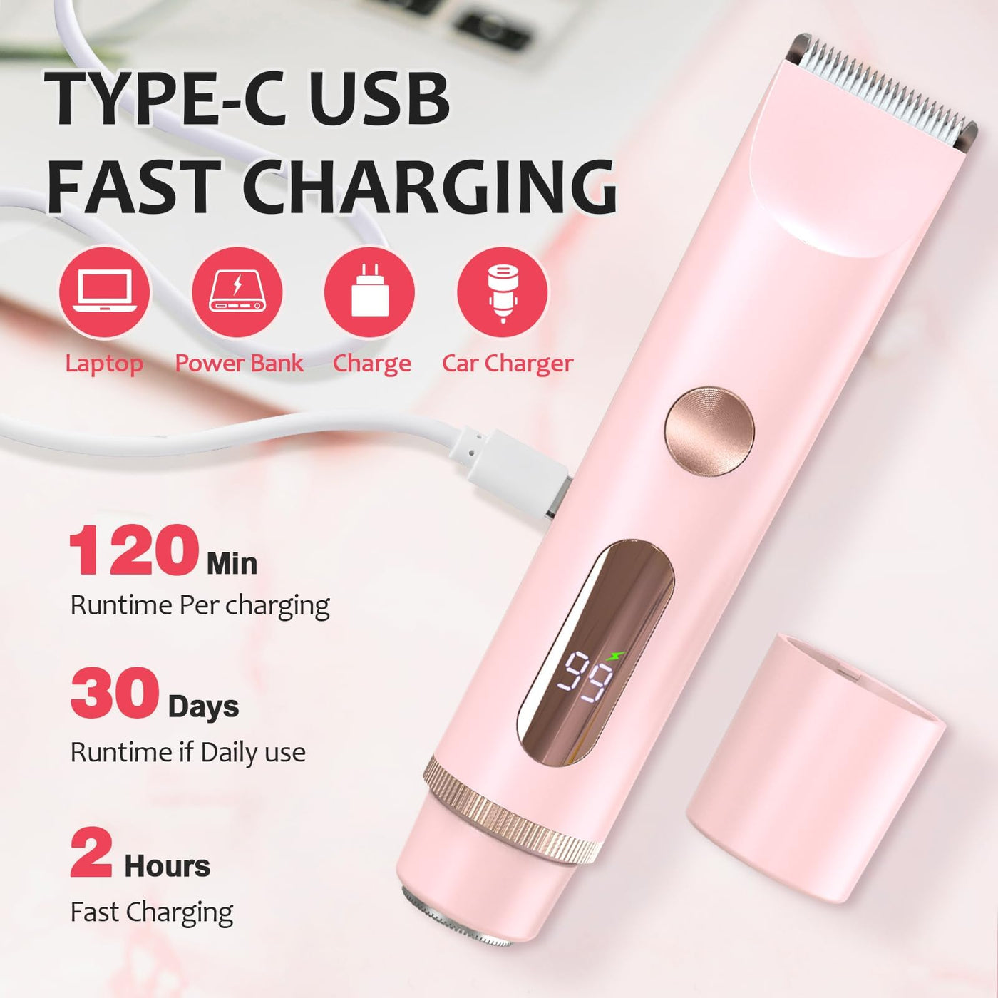Bikini Trimmer for Women,IPX7 Waterproof Rating for Wet and Dry Use,Rechargeable,Electric Razors for Women,2 in 1 Dual Blade,for Use on The Face, Underarms, Bikini Area and Legs. (Pink)