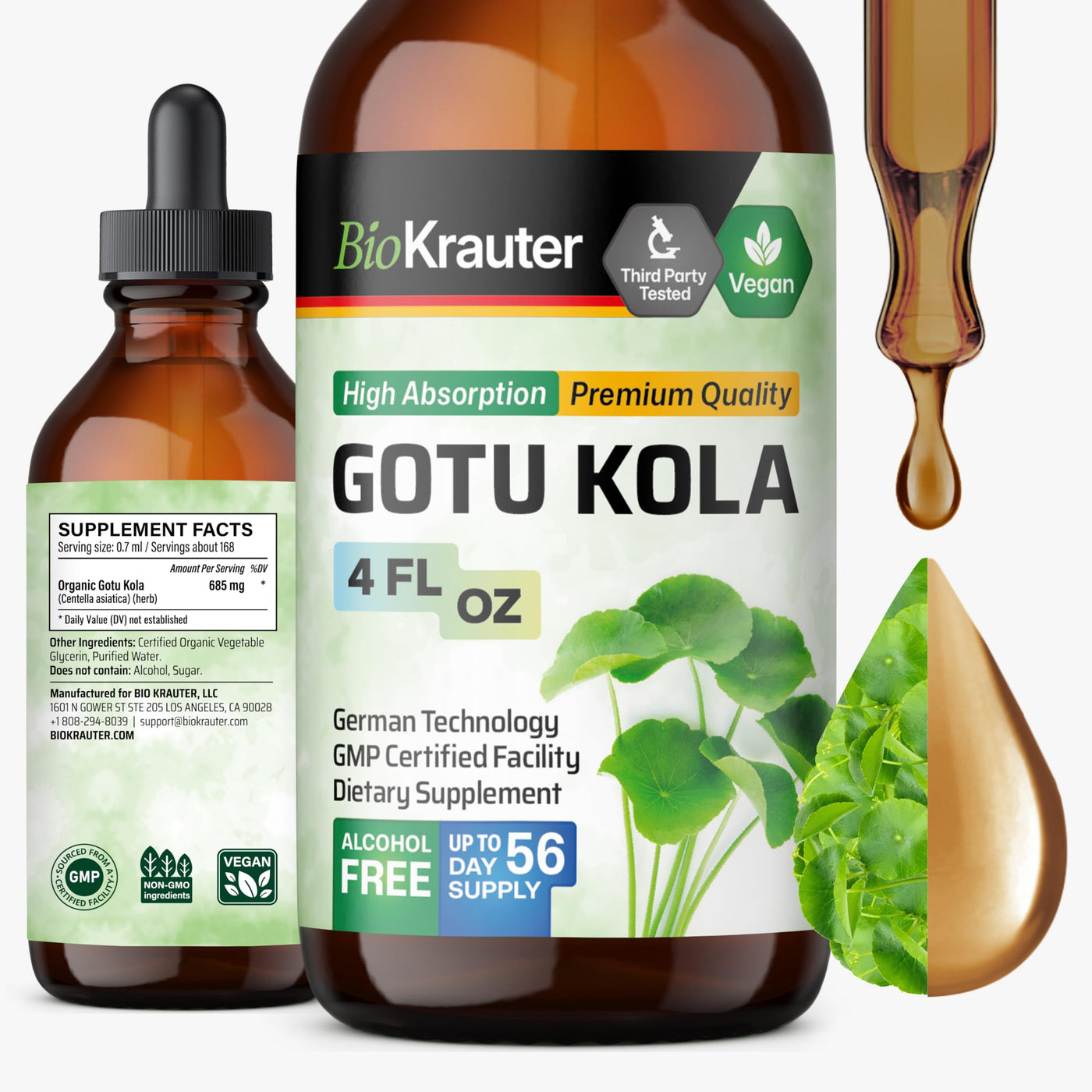 - Gotu Kola Tincture for Brain: BioKrauter gotu kola liquid, made from Centella asiatica (commonly known as gotu kola), supports brain health by promoting clarity.