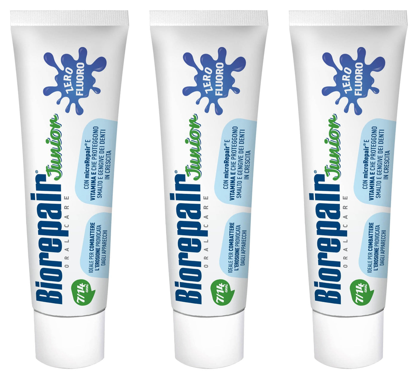 Biorepair: Oral Care Junior 7-14 Years Toothpaste, Fluoride Free, with Mint Extract - 2.53 Fluid Ounces (75ml) Tubes (Pack of 3) [ Italian Import ]