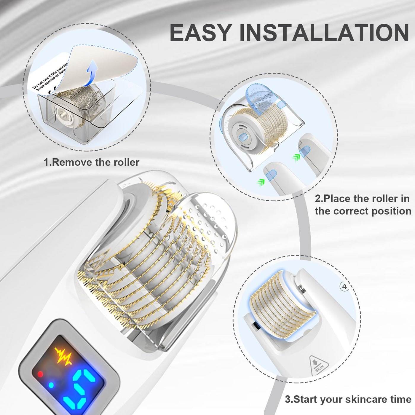 Instructions: Type: Derma roller Paking: 1PC/BOX N.M.: 80 G Roller: 0.25mm needle length 540 Titanium Microneedling Material: plastics