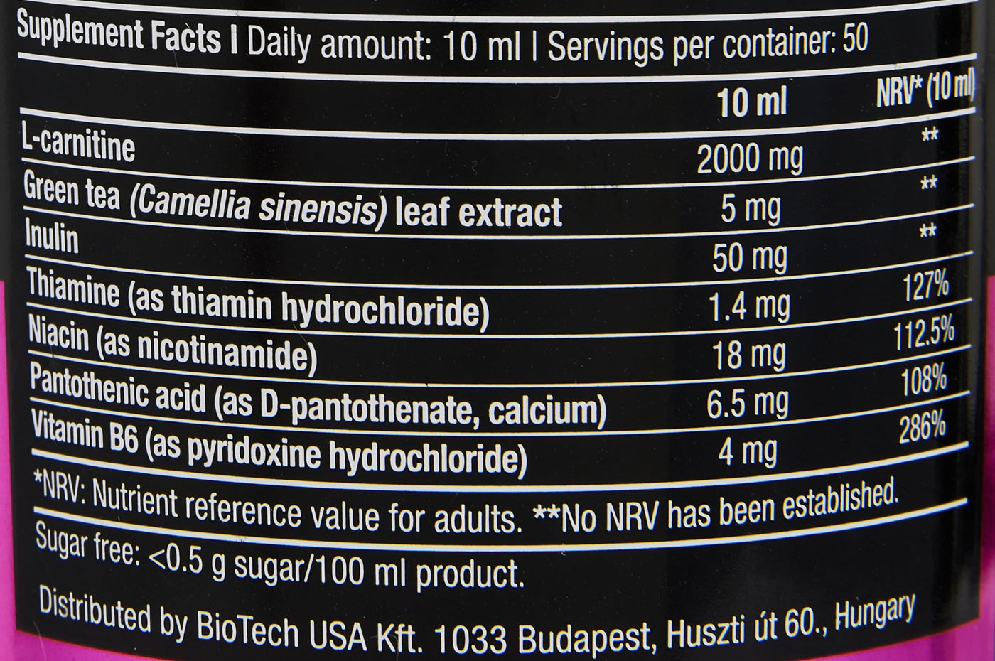 BioTechUSA L-Carnitine 100,000 | 2,000mg L-Carnitine | Sugar, lactose, gluten free, 500ml, cherry