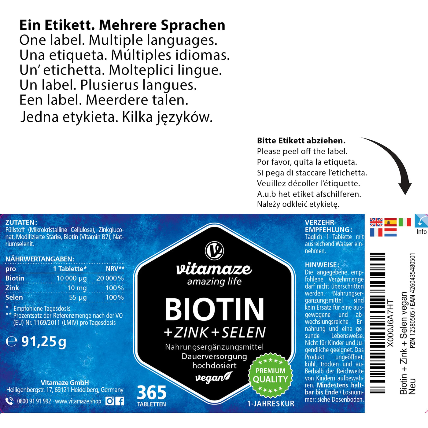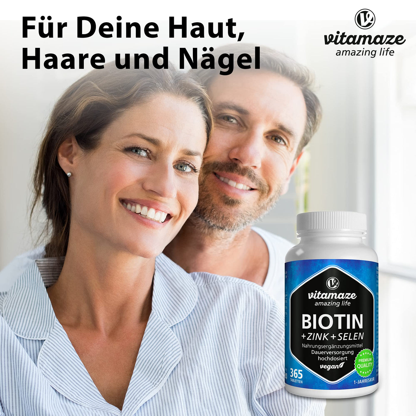 - VEGAN: Vitamaze Biotin is made exclusively from non-animal ingredients and is therefore ideal for VEGANER and VEGETARIER. Our product is completely free from genetically modified ingredients and any unnecessary additives.