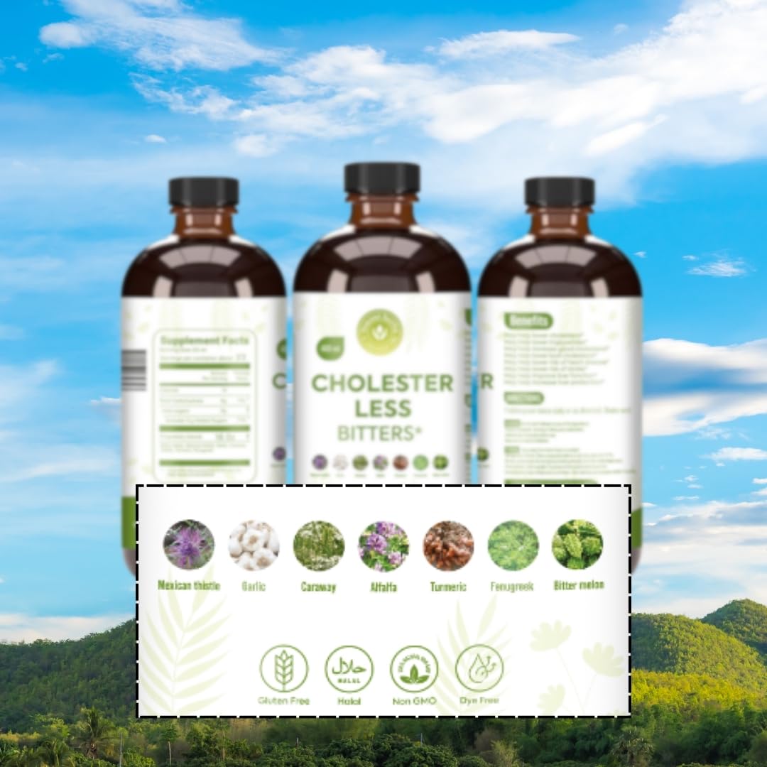 Discover the natural path to heart health with Cholester Less Bitters. Our carefully crafted dietary supplement combines a blend of natural ingredients, including Bitter Melon and Turmeric, to support healthy heart function and cholesterol levels. Formulated without gluten, GMOs, artificial dyes, or colors, Cholester Less Bitters offers a wholesome approach to cardiovascular well-being.