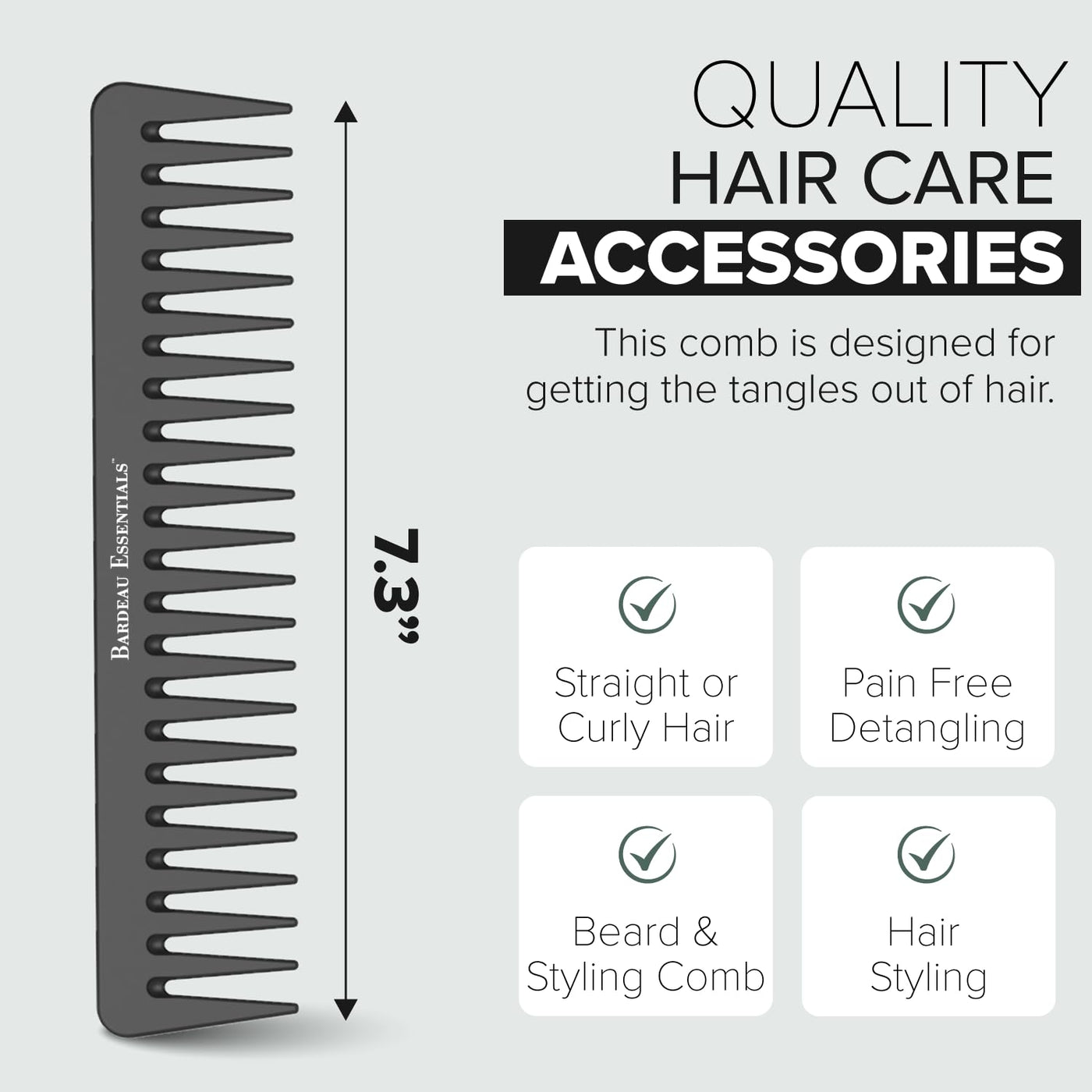 Black Carbon Wide Tooth Comb (7 Inch) - 2 Pack - Professional Detangling & Styling Tool for Men & Women, All Hair Types
