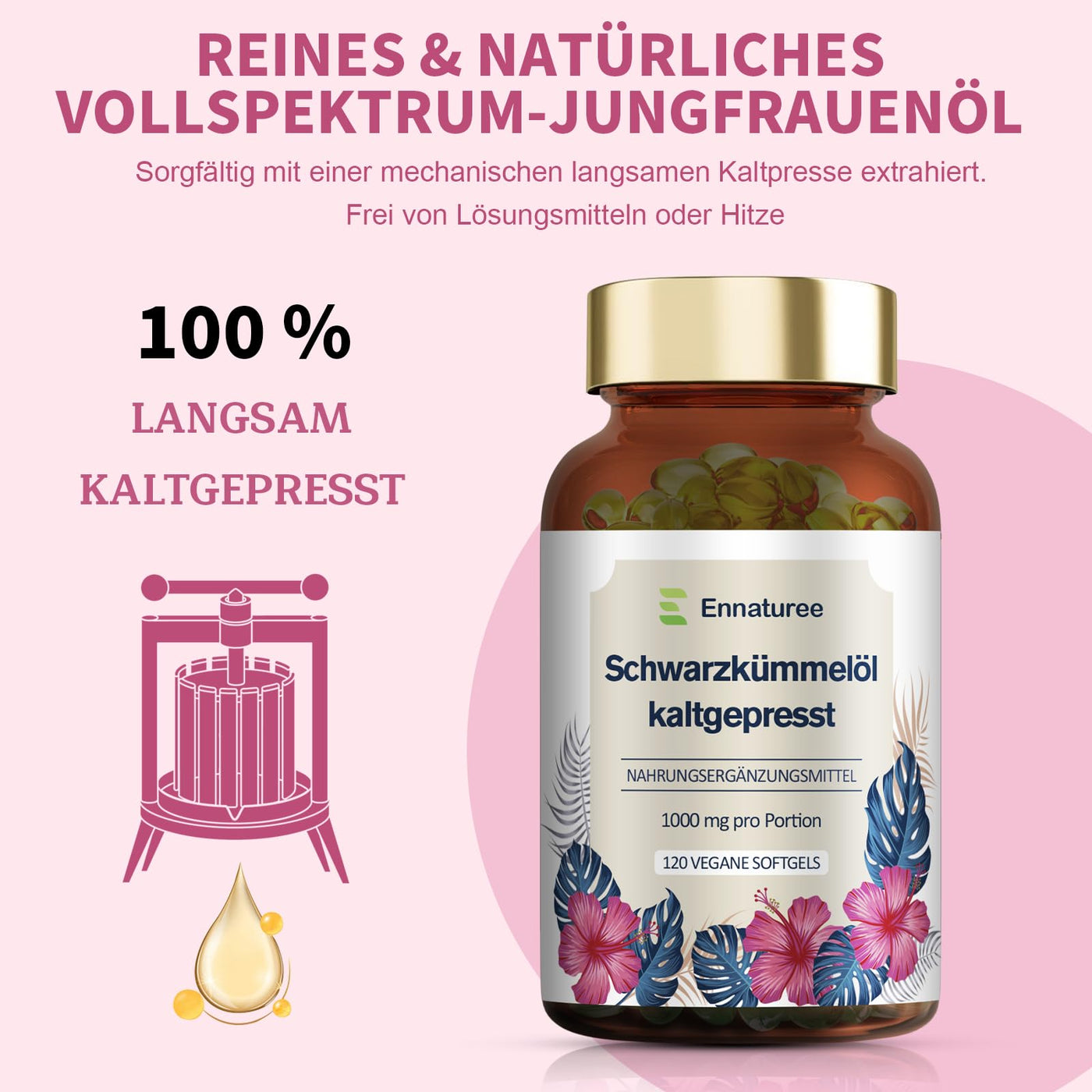 Black cumin oil capsules with vitamin E Natural and cold pressed Black cumin oil 1000mg per daily dose High dosage Vegan 120 capsules German premium quality
