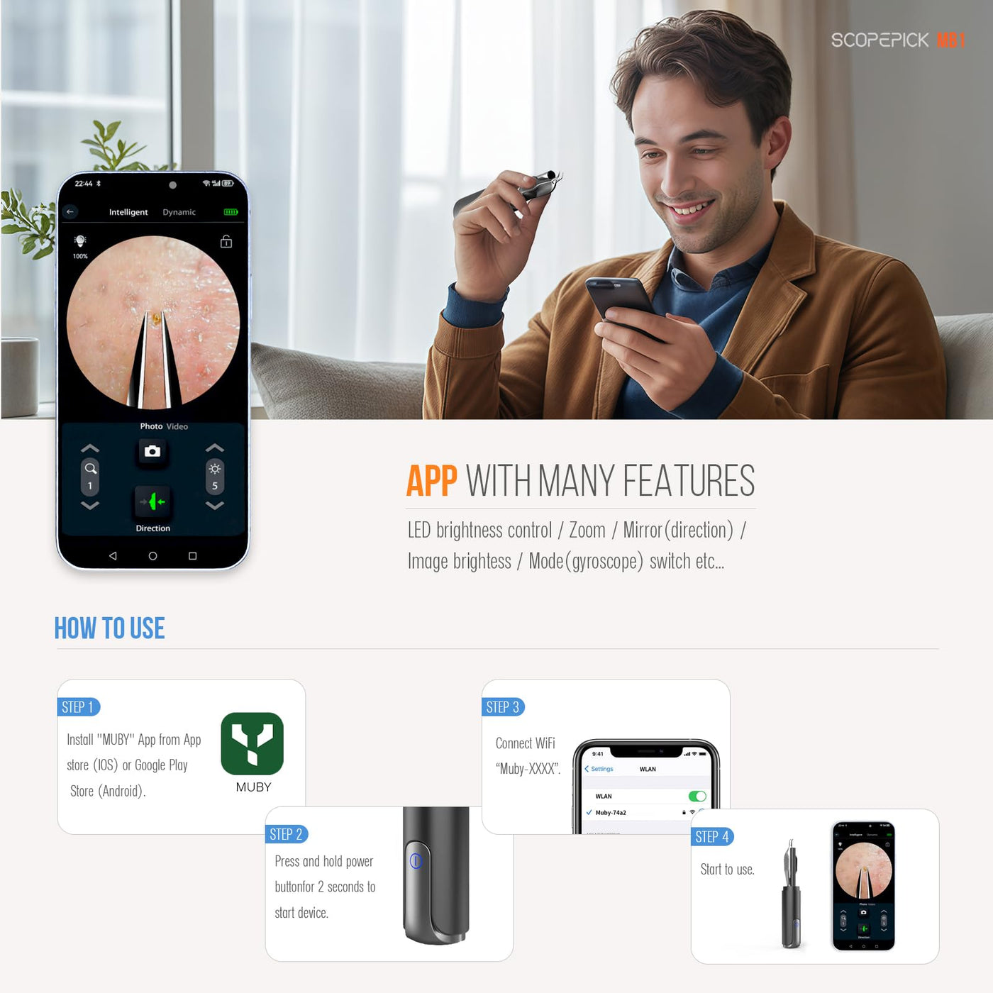 - Magnified View: The integrated camera provides a magnified, up-close view of the target area for meticulous grooming and extraction.