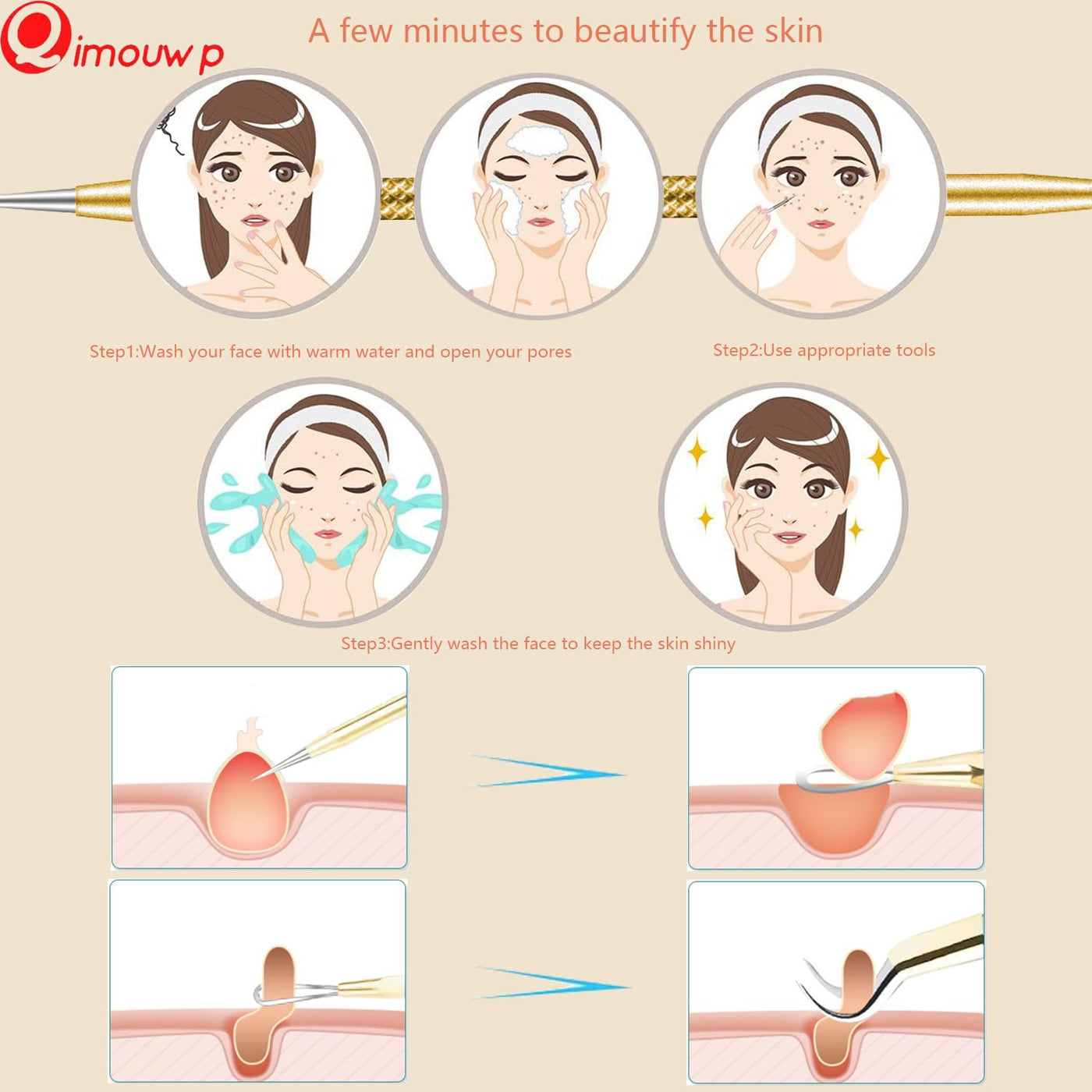 - 1. MULTI FUNCTION BEAUTY TOOLS SET - This blemish & blackhead removal tools contains a pair of classic, slant, pointed, and pointed slant tweezers and 14 acne removal needles tools, this is a set of tools for whole face care. Perfect choice to handle a variety of salons jobs.