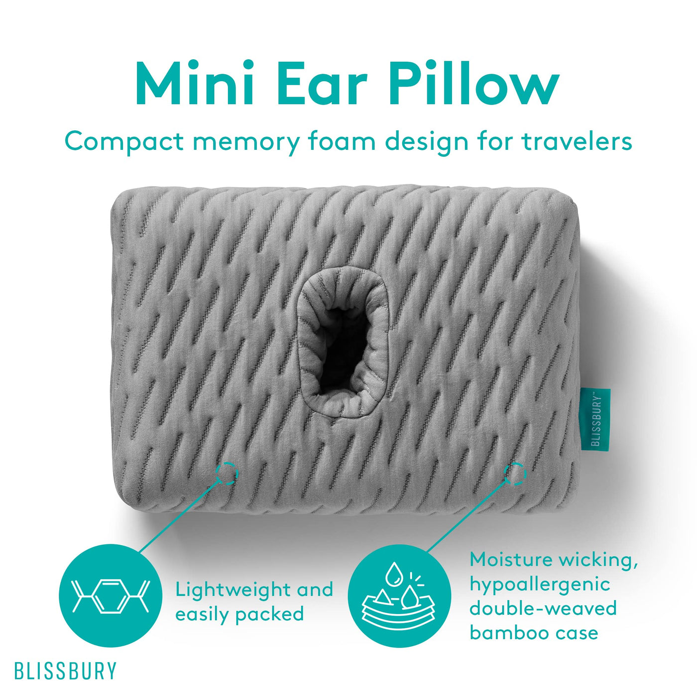 - Compact and Convenient for Travel: The BLISSBURY Mini Ear Hole Pillow is your ideal travel companion, offering comfort without compromise. Its compact design does not sacrifice your ear's comfort, ensuring you wake up refreshed and pain-free, no matter where you are.