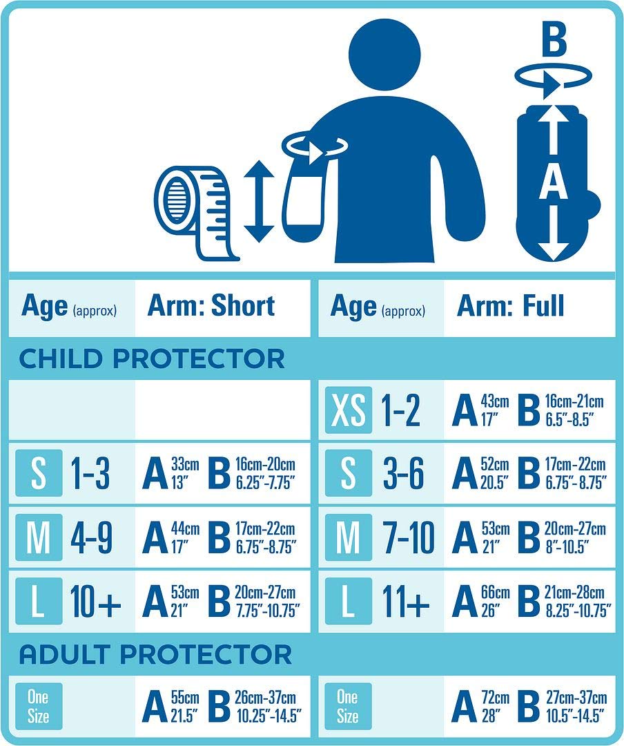 - SIZING GUIDE - refer to the sizing chart. MEASURE the Arm or Leg. The correct circumference is vital for a watertight seal. Consider both adult and child sizes. VISIT OUR STORE FOR FULL PRODUCT RANGE