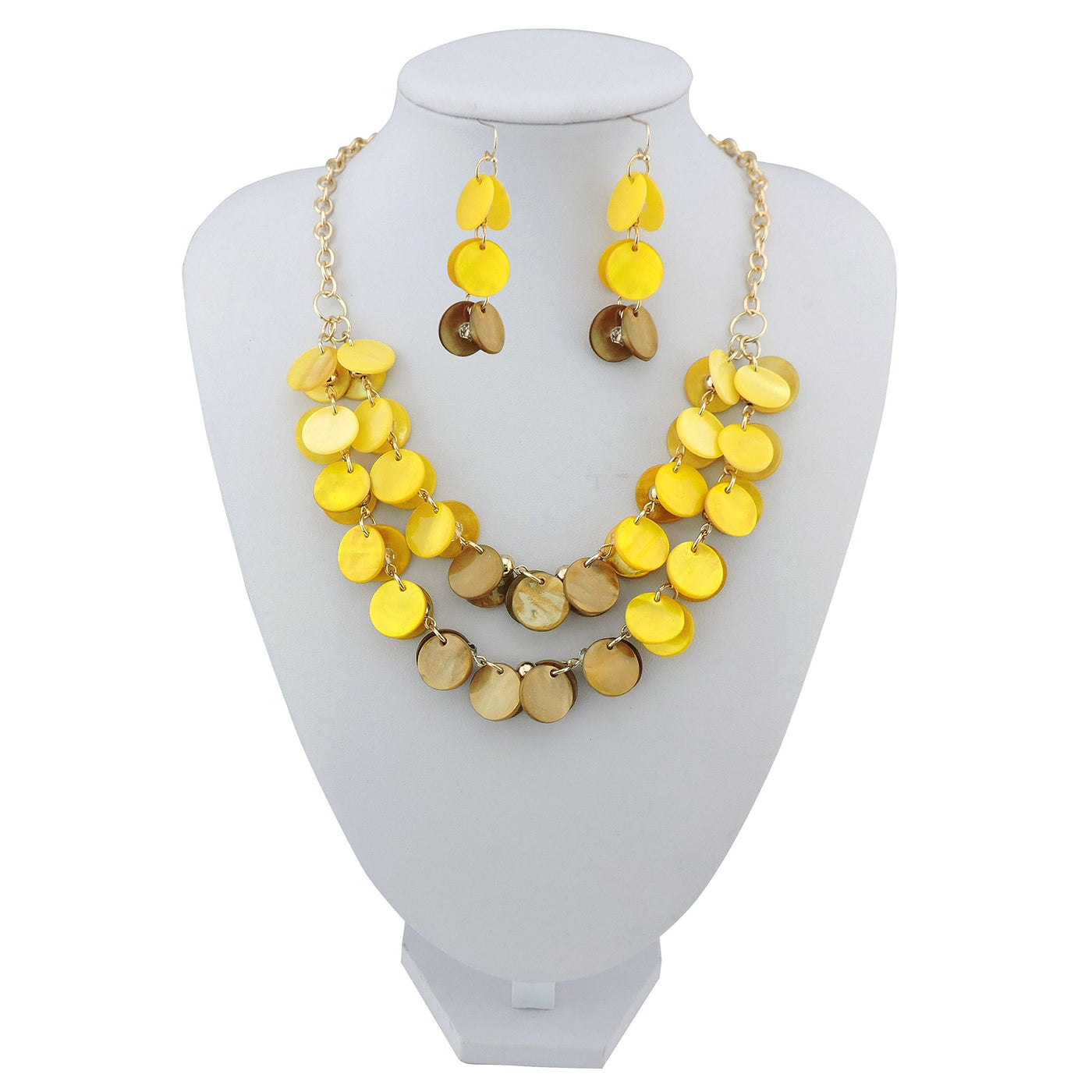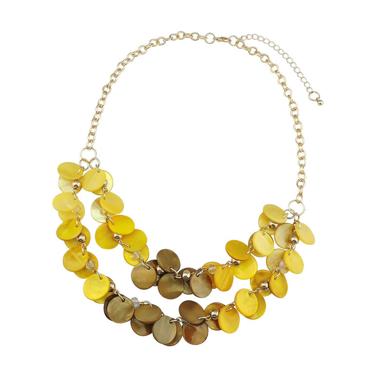 Bocar 2 Layer Statement Choker Shell Necklace and Earring Set for Women Gift yellow