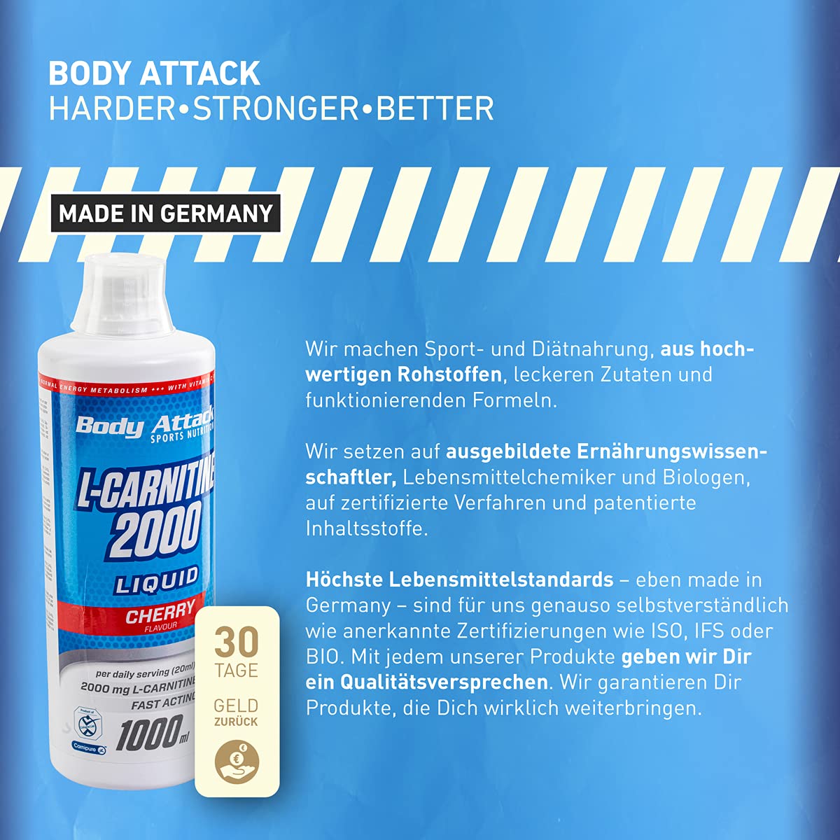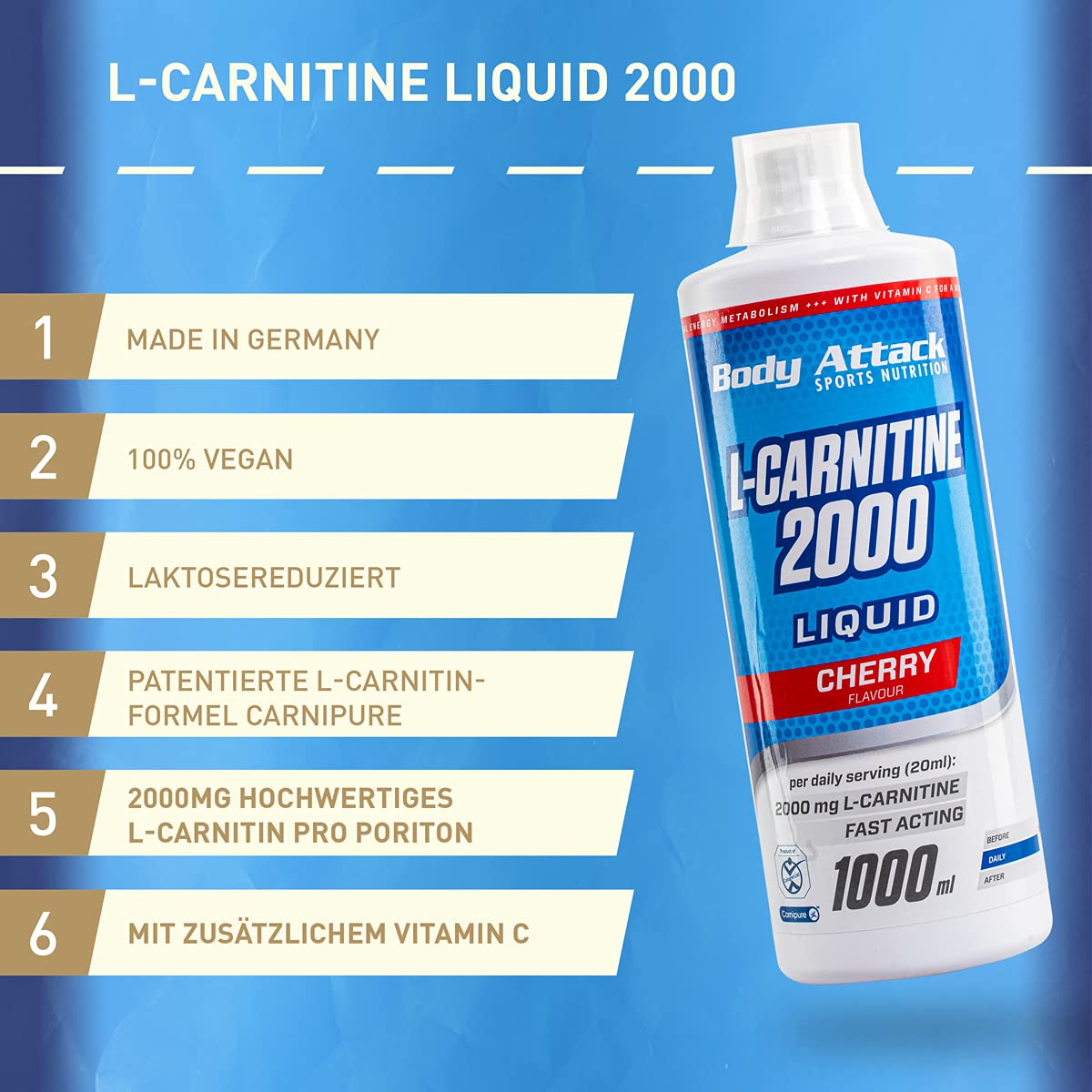 - Ideal for figure-conscious people, athletes and during a diet; Body Attack L-Carnitine Liquid is gluten free & Lactose-free, product from the Cologne List