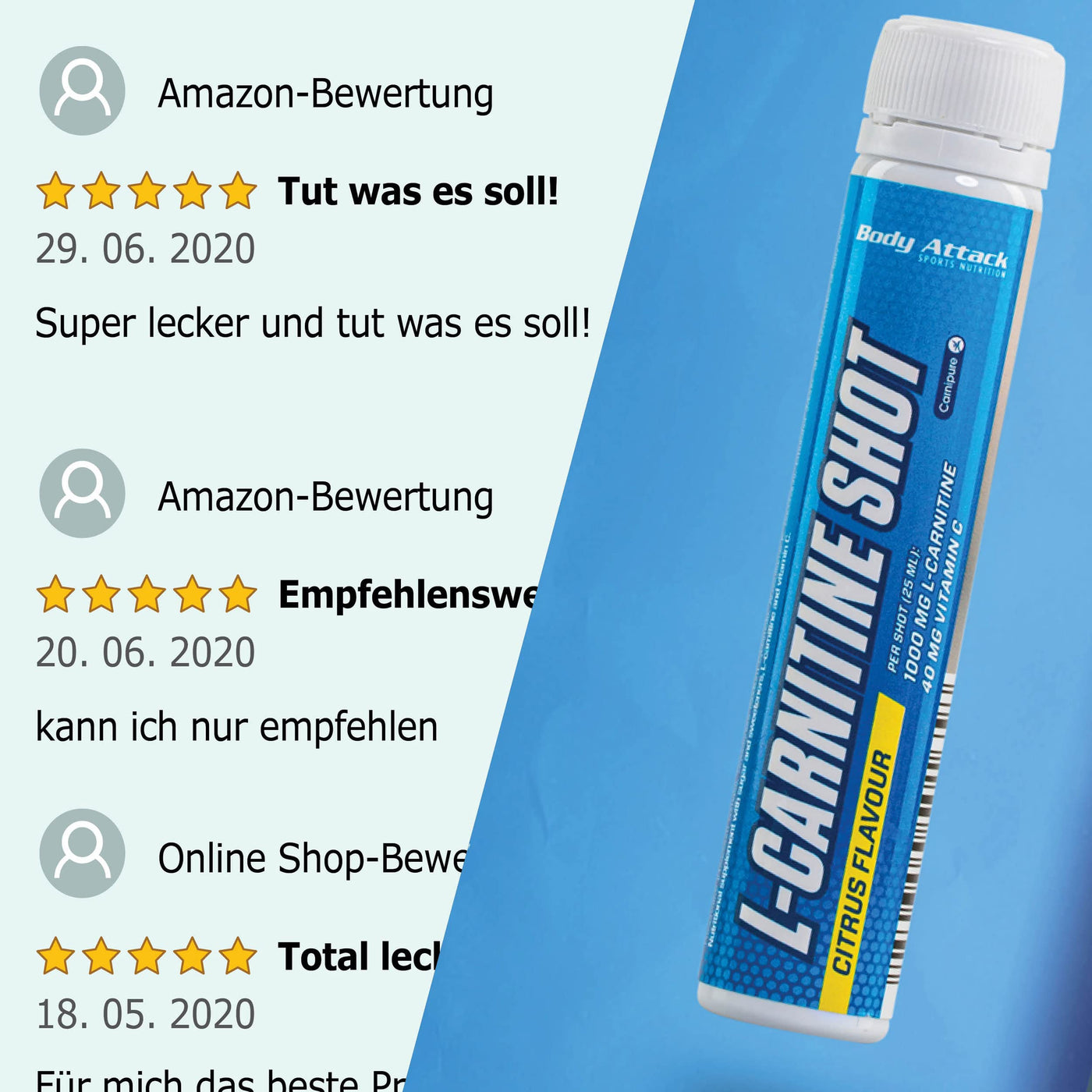 Body Attack L-Carnitine Shots, Lemon, Pack of 1 (20x 25 ml)