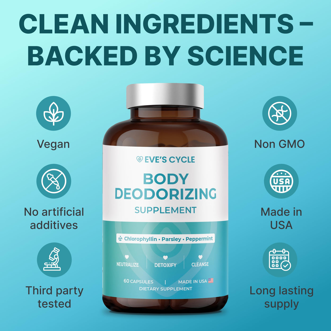 - FINALLY, DEODORANT THAT DOESN'T GHOST YOU AT 2PM: Our body odor supplement works from the inside out with 500mg+ of Chlorophyllin, Parsley & Peppermint. Because external deodorant is great until it's not.