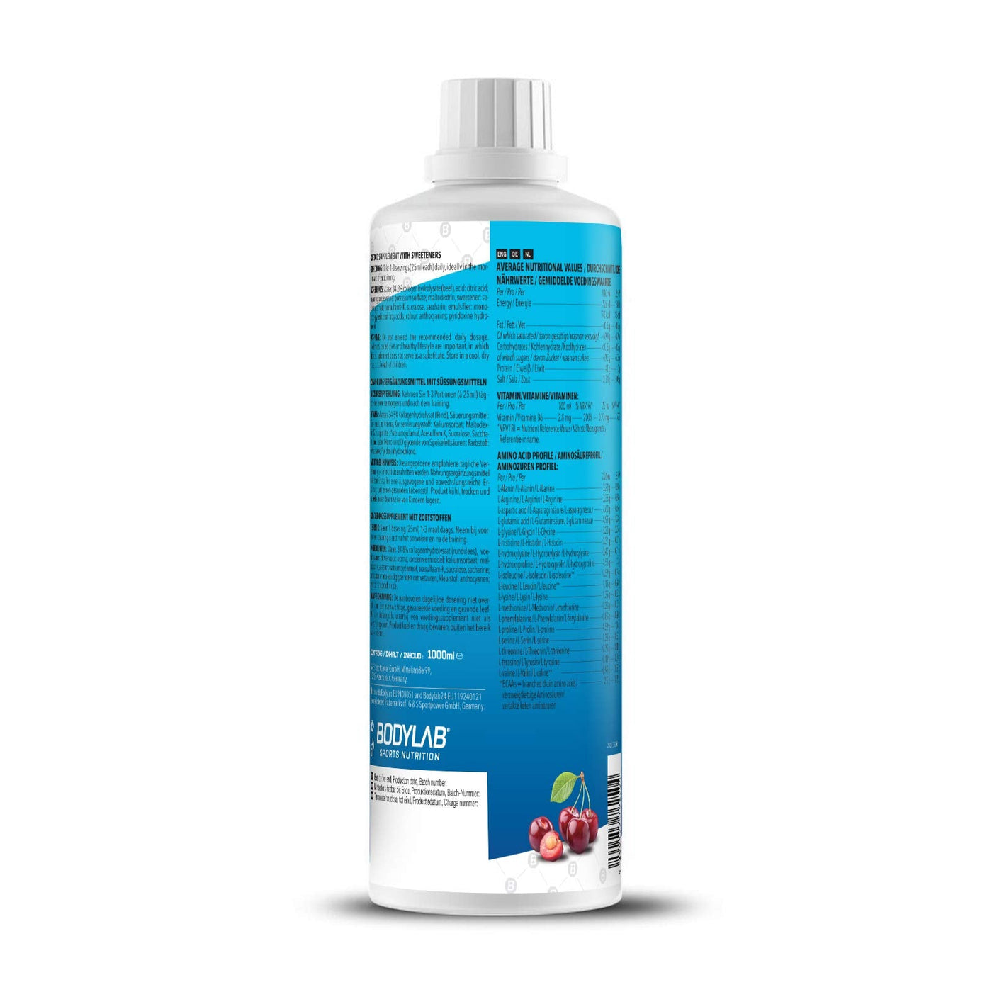 Bodylab24 Amino Liquid 1000ml | BCAA, L-glutamic acid and vitamin B6 | Cherry Berry