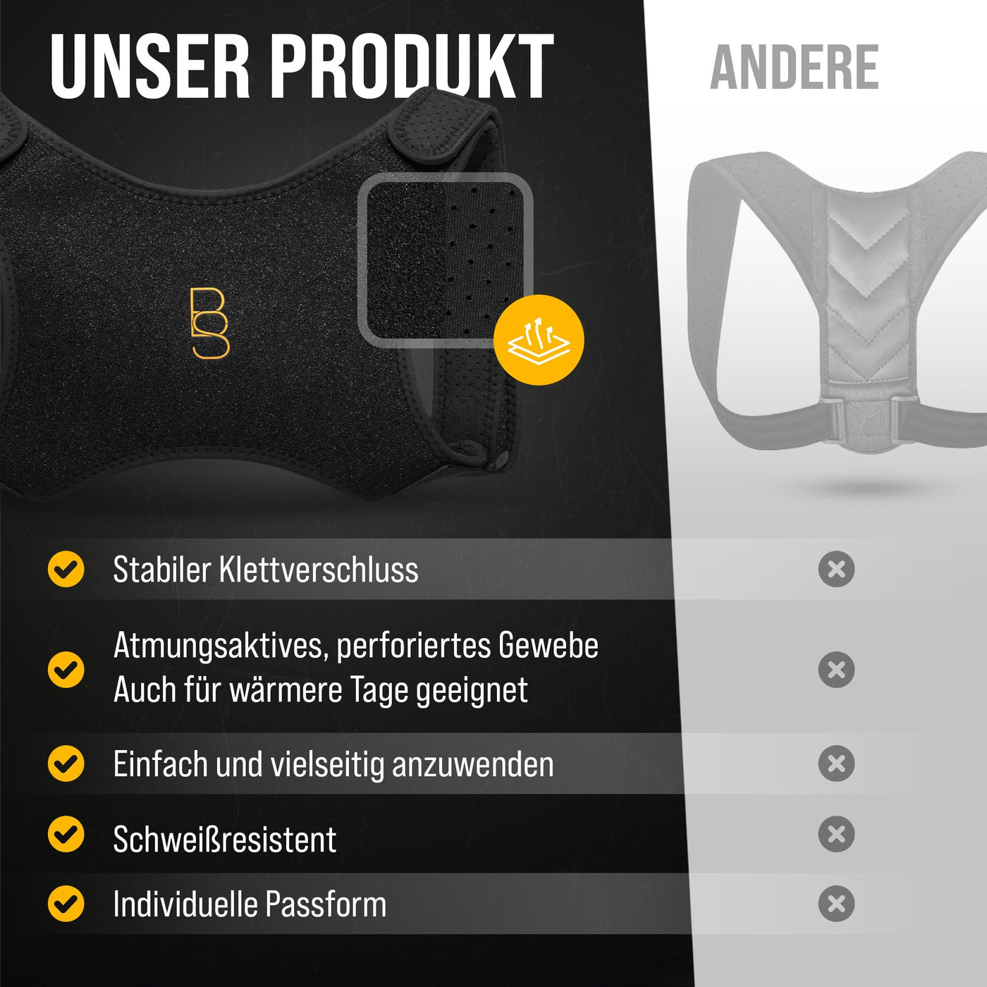 BODYSOLUTION back straightener - 3 in 1 - high-quality posture correction - back support belt for an upright posture - size-adjustable back strap - black - S-M
