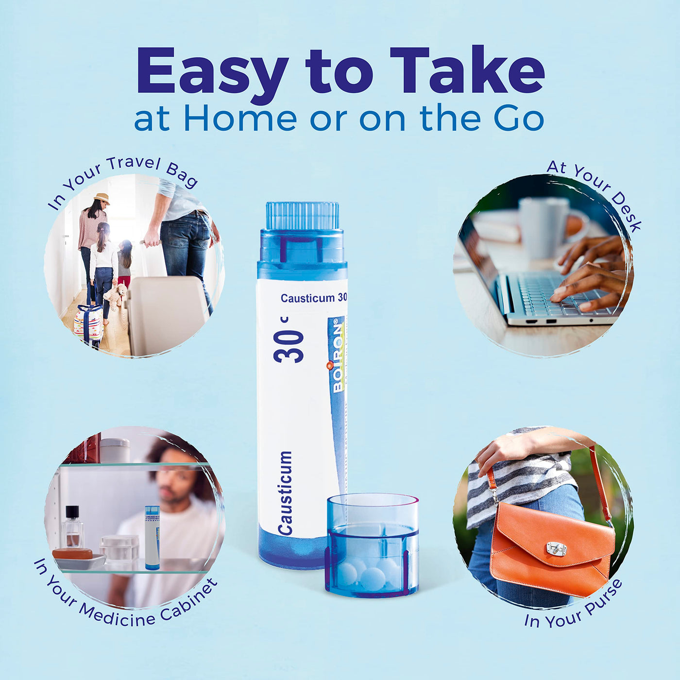 Customize your care with Boiron single medicines for highly targeted relief. Causticum is a homeopathic medicine that reduces occasional bladder leaks from coughing, laughing, sneezing, or exercise. It will not interact with other medications, herbs, or supplements. The meltaway pellets dissolve in the mouth without water and come in easy dispensing tubes to take on the go. Causticum is recommended for use by adults 18 years of age or older. The Causticum Bonus Pack includes three tubes of Causticum 30C pellets for the price of two, with a total of 48 doses. Made using the highest quality ingredients and sustainable practices, this medicine has no artificial sweeteners, flavors, colors, or preservatives. Boiron’s personal care line also includes Cyclease® Cramps for period pain, Cyclease PMS Relief, Cyclease Menopause, and YeastCalmTM for yeast infection relief. Claims based on traditional homeopathic practice, not accepted medical evidence. Not FDA evaluated.