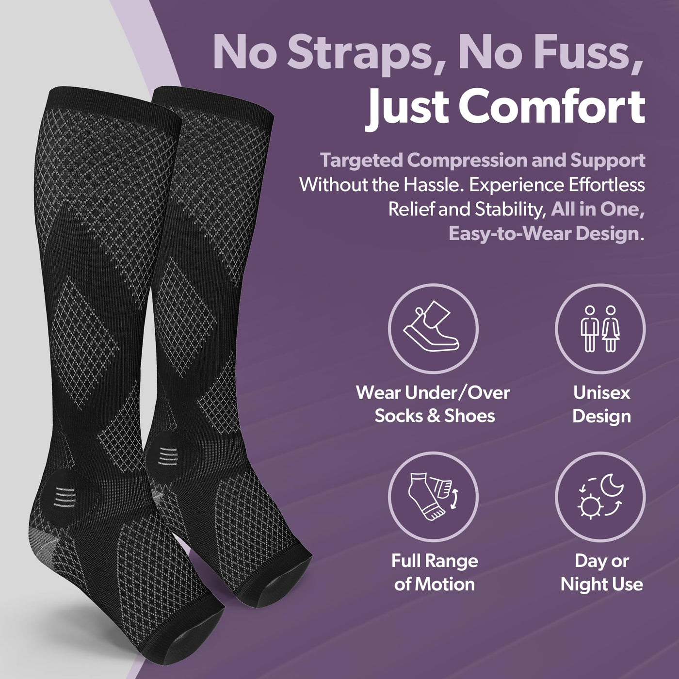 - Open or Closed Toe Options for Personalized Relief: Choose between breathable toeless or full-coverage closed-toe designs based on your comfort preference; both styles provide daily support for swollen feet, leg pain, and sensitive toes, with therapeutic warmth or added ventilation