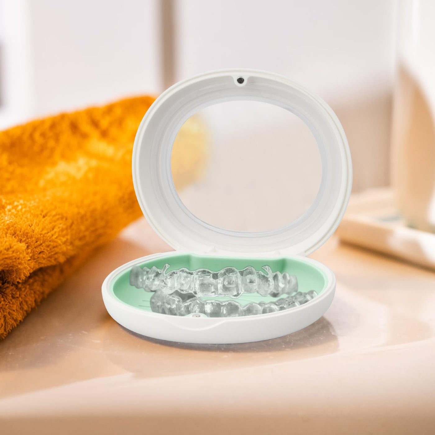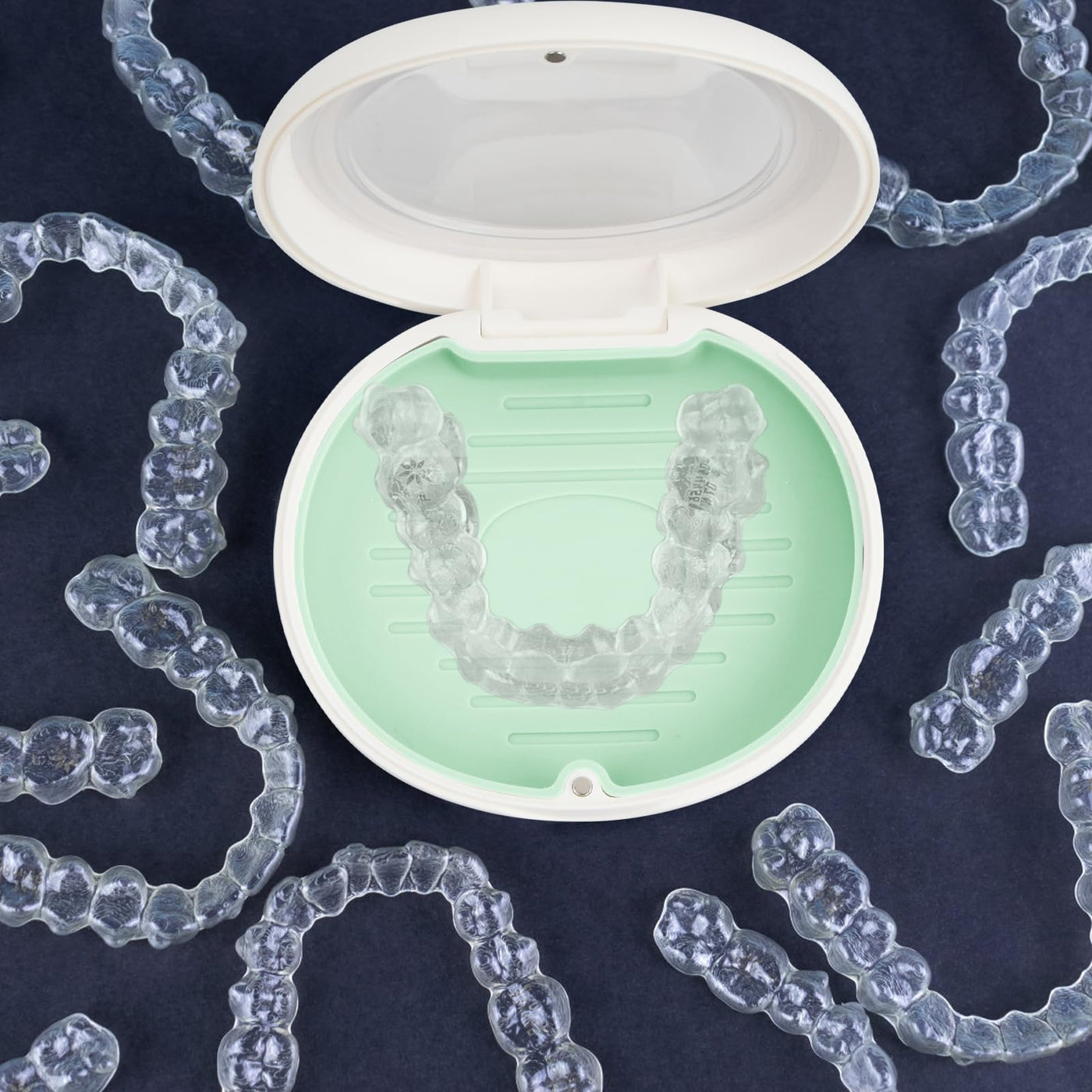 - Portable and convenient: With its slim, round design, our dental splint box is incredibly easy to carry. Their slim profile fits effortlessly into your purse or pocket, ensuring your aligner or retainer is always protected whether you're at home or on the go.