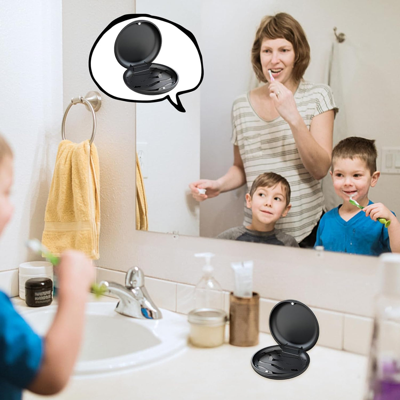 Braces box, denture container, portable tooth splint box, tooth rescue box, denture box, denture box, for storing braces and dentures for adults and children (black)