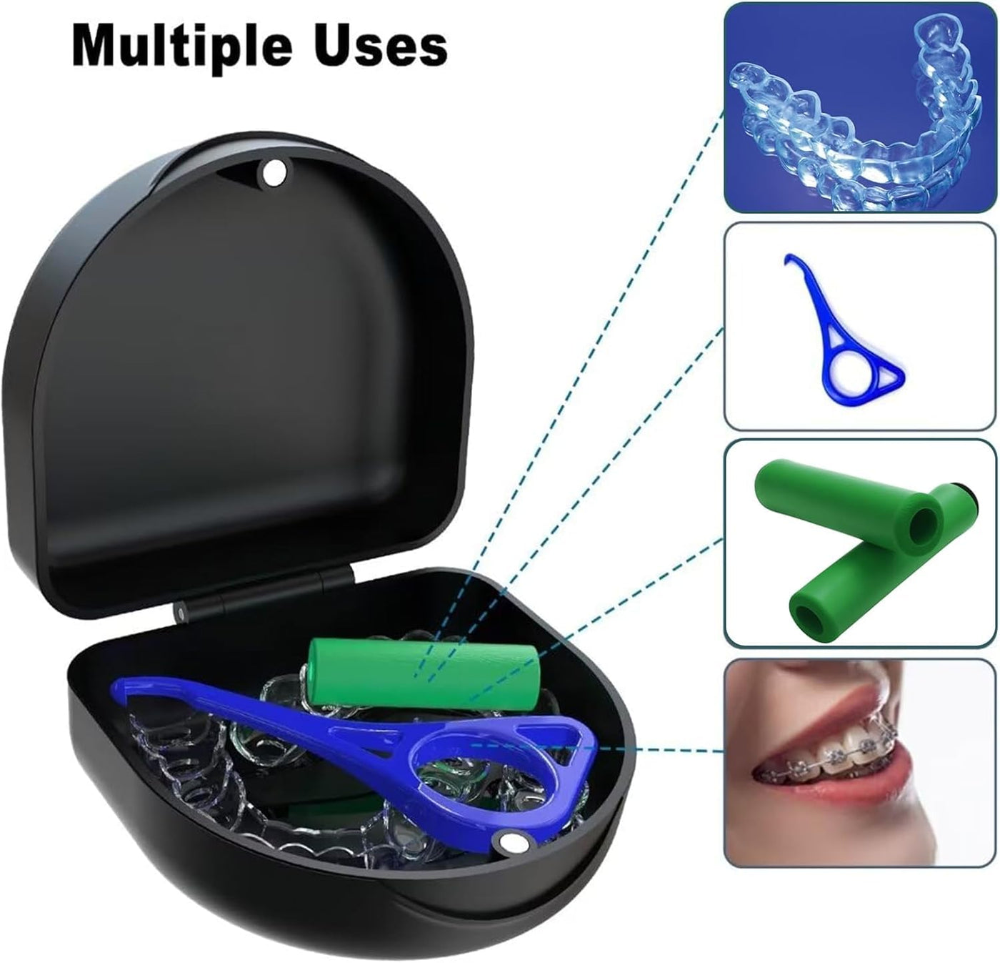 - Various applications: AHEJIOO braces box is not only suitable for false teeth containers, but can also be used to store mouth guards, pacifiers, bite guards and orthodontic appliances. In addition, braces box is convenient to transport and prevents accidental handling damage