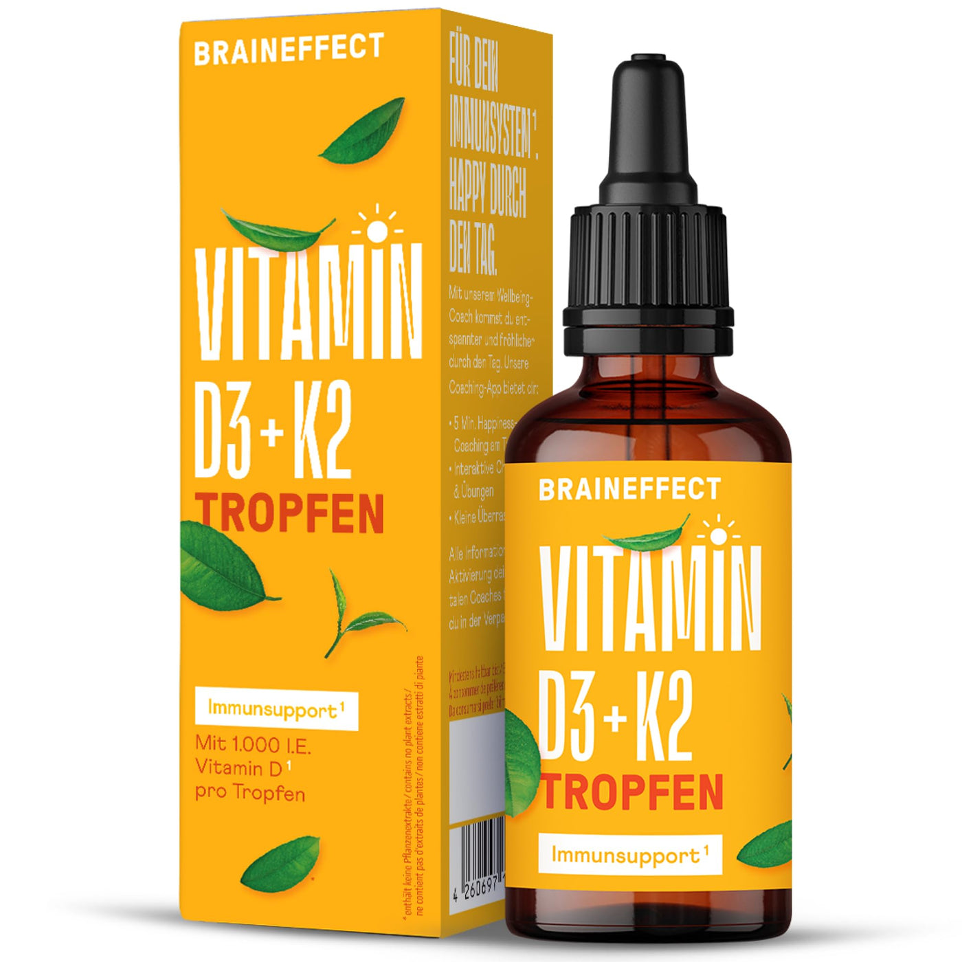 BRAINEFFECT Vitamin D3 K2 drops (50 ml) High-dose drops in MCT oil for a stronger effect - cover 500% of the daily requirement, 17 month supply (tasteless) Neutral 50 ml (pack of 1)
