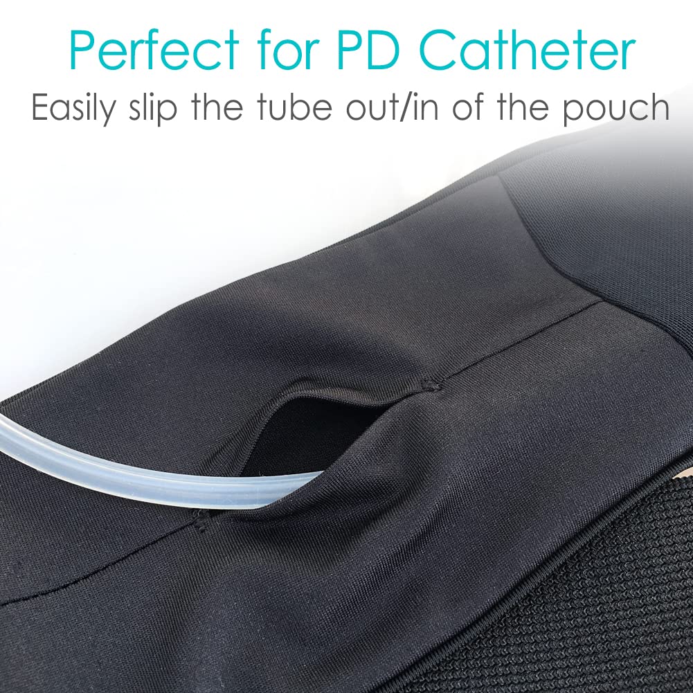 - Keep PD Catheter Secure: Our peritoneal dialysis belt is made of breathable and stretchable material that is so comfortable to wear and so soft that you can't feel it. There is a mesh pocket in which you can store the transfer device safely and never have to worry about it slipping out. You can also place items such as peritoneal dialysis accessories or medical equipment. The peritoneal dialysis belt has slits that allow the catheter inside to be passed through and attached to your body.