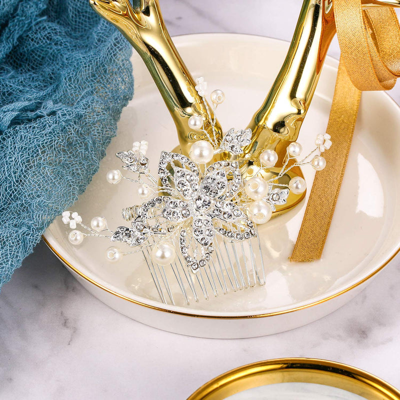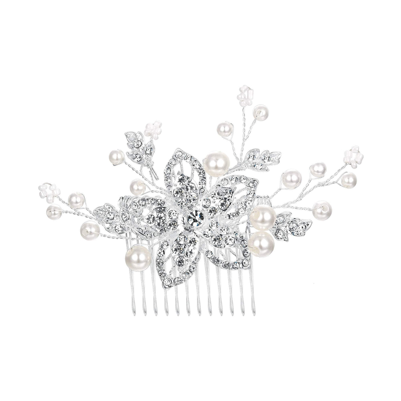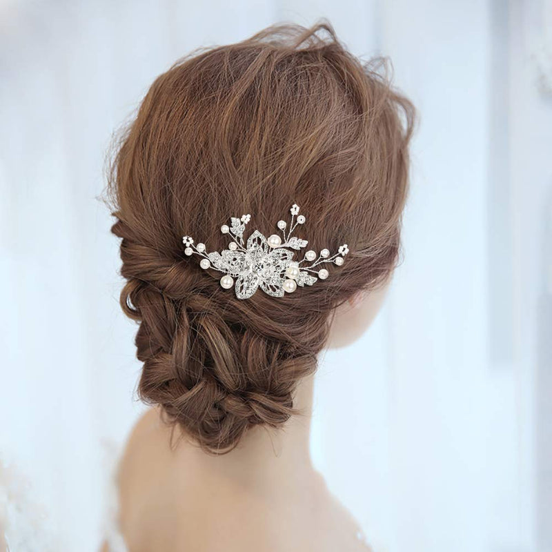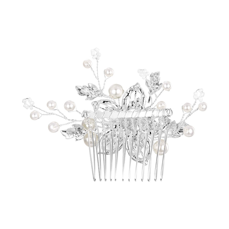 BriLove Women's Bohemian Boho Simulated Pearl Flower Handmade DIY Bendable Filigree Hair Comb Ivory Color Clear Silver-Tone