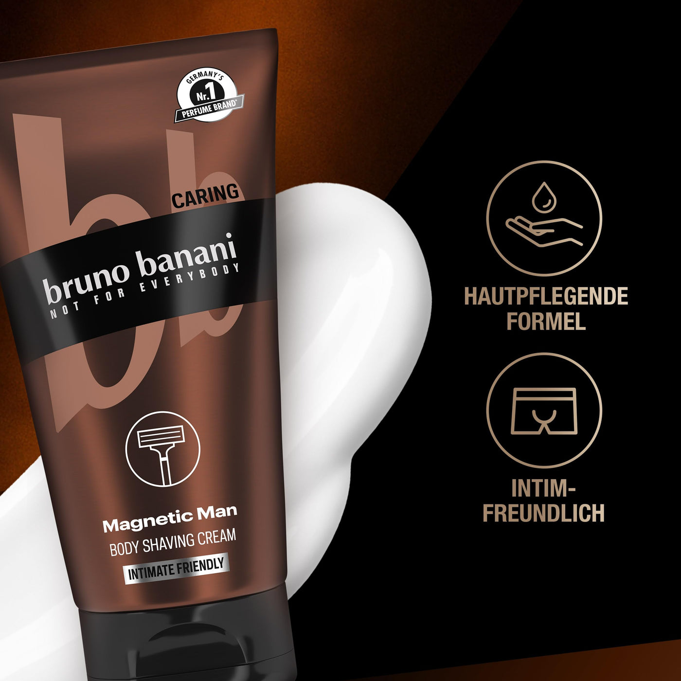 - For smooth skin all over the body: The shaving cream that matches the captivating, woody scent of bruno banani Magnetic Man.