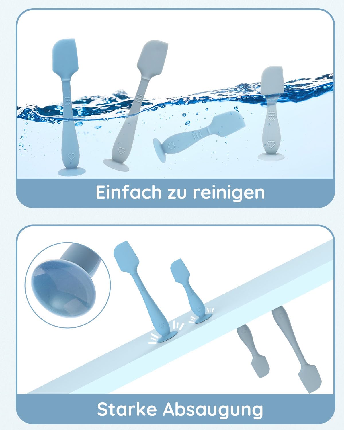 btrfe Baby Diaper Cream Spatula, Silicone Baby Diaper Rash Cream Applicator, Soft Butt Paste Spatula Brush with Suction Base for Newborn Essentials, 4-Pack (Blue)