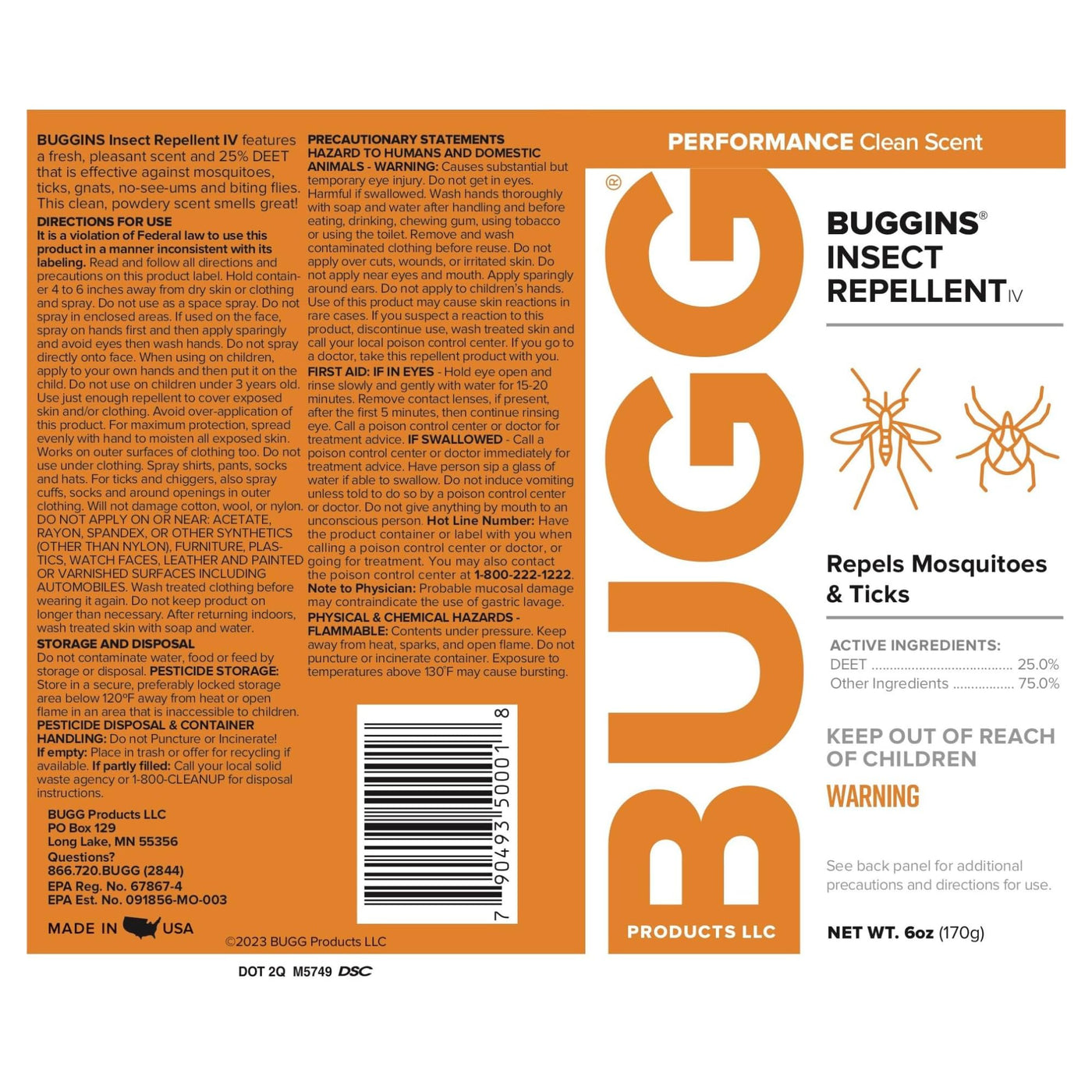 BUGGINS IV Performance - Insect Repellent - Mosquitoes, Gnats, Ticks, and Biting Flies, 25% DEET, Powdery Scent - 4 oz Pump Spray Bottle
