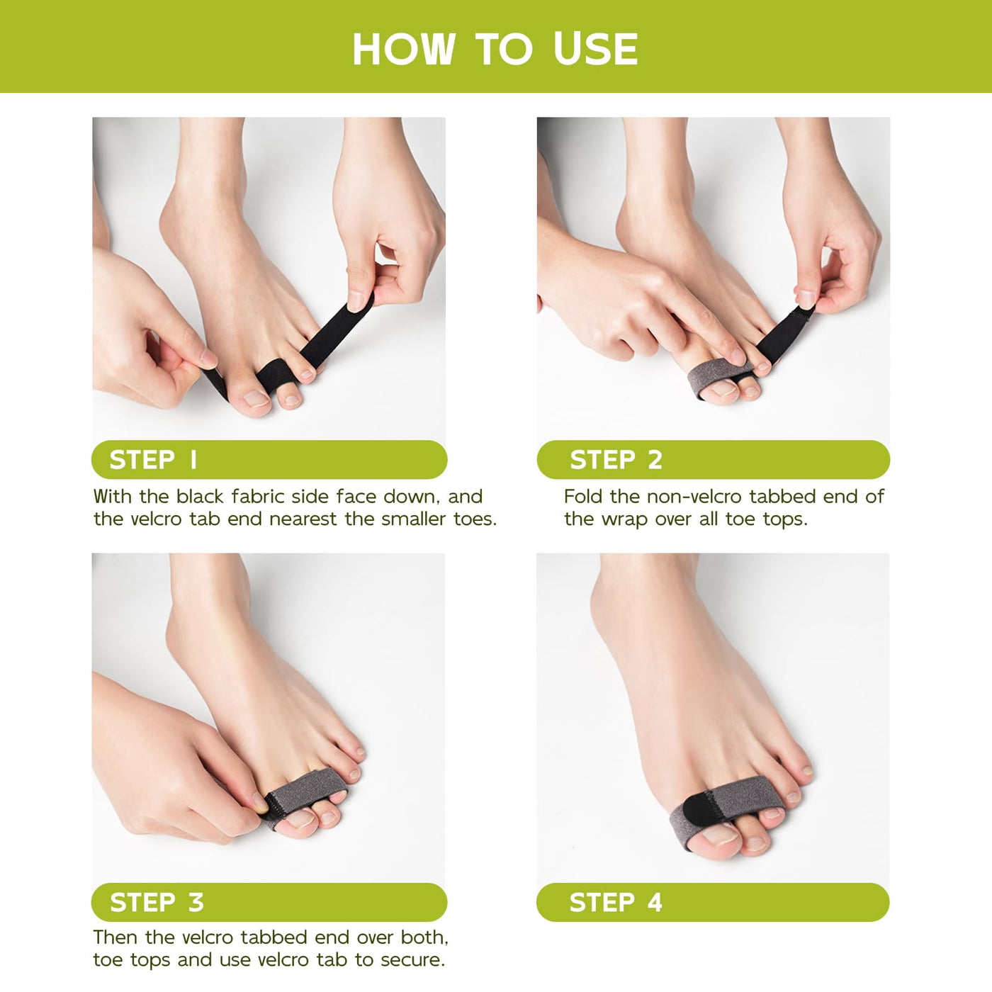 - Broken Toe Treatment: Our toe bandage acts like a soft splint, wrapping snugly around broken toes to cushion and stabilize fractures. It also gently separates and realigns overlapping toes, offering relief and promoting healing.