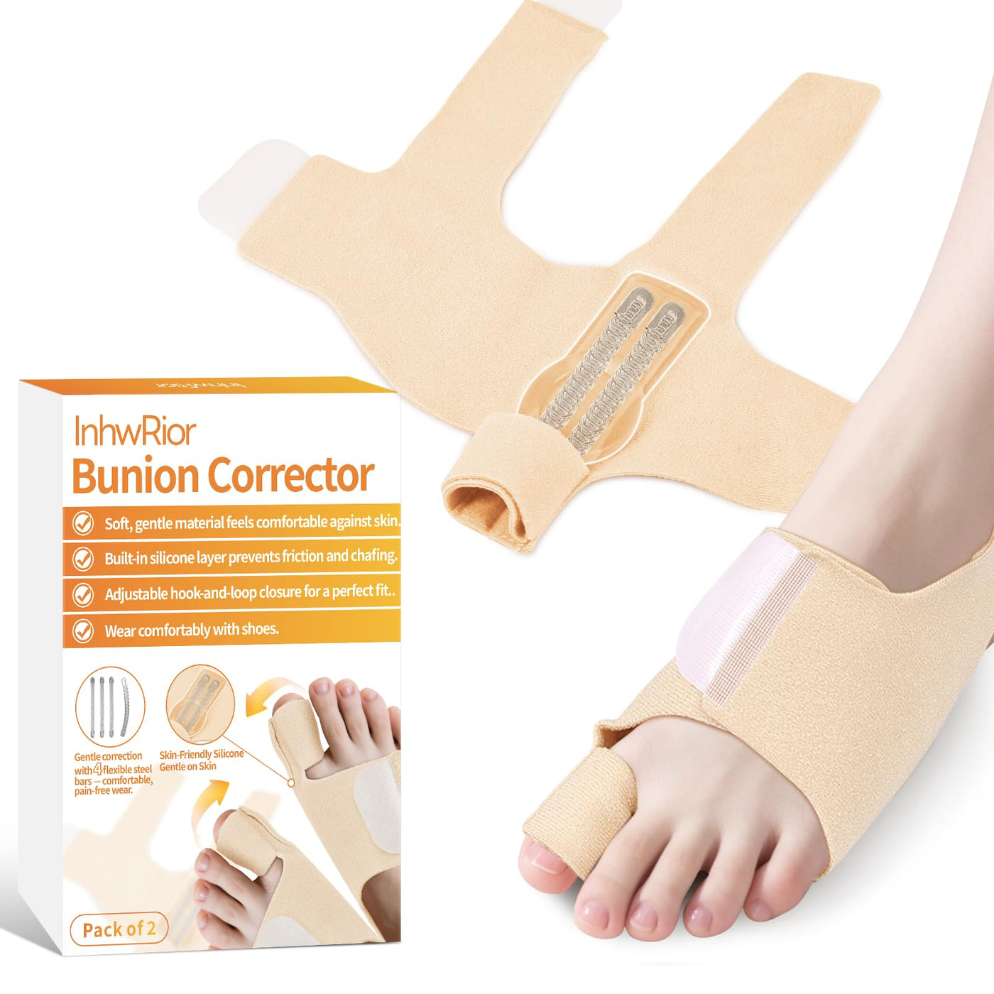 - Unique Design:Features built-in flexible stainless steel for gentle, safe correction that protects toes, bones, and tendons. Skin-friendly silicone padding shields the bunion area from friction, promoting foot health.
