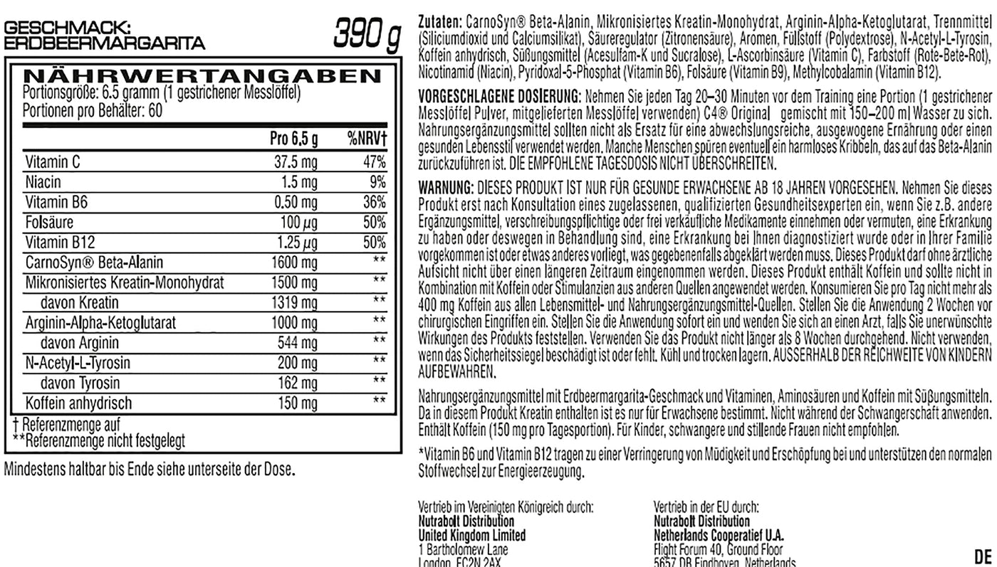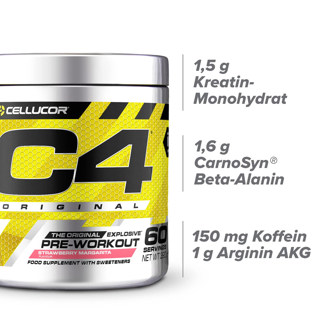 C4 Original - Pre-Workout Booster - Drink Powder for Energy Drink | 150 mg caffeine + beta-alanine + creatine monohydrate (strawberry margarita, 60 servings)