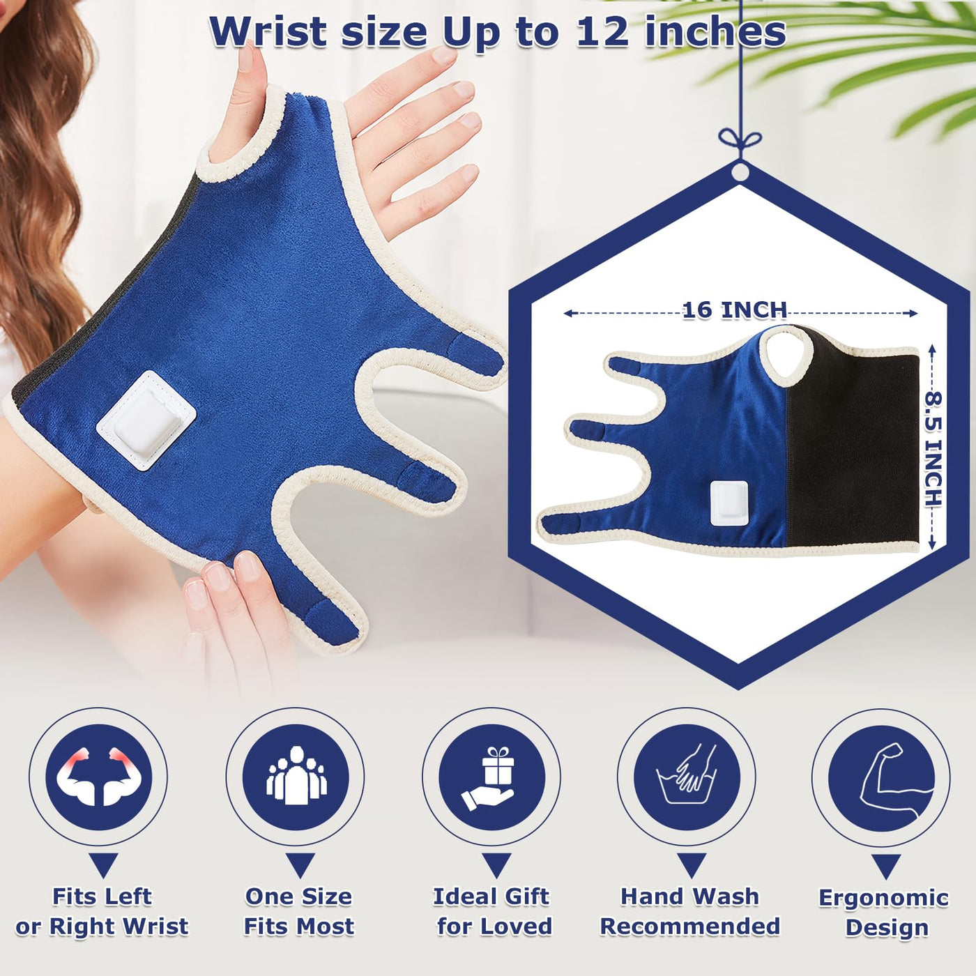 - Universal Size & Perfect Fit For Men And WomenDesigned for both men and women, left or right wrist. Wrist straps can be freely adjusted according to individual needs, allowing you to tighten or relax at a comfortable level, taking care not to be too tight, so as not to feel tingling or numbness. With extra soft plush for material, fabrics is soft and comfortable, hand feeling is admirable. Providing plenty of heat to your wrist, hand, and arm, relieving pain and relaxing for ultimate comfort.