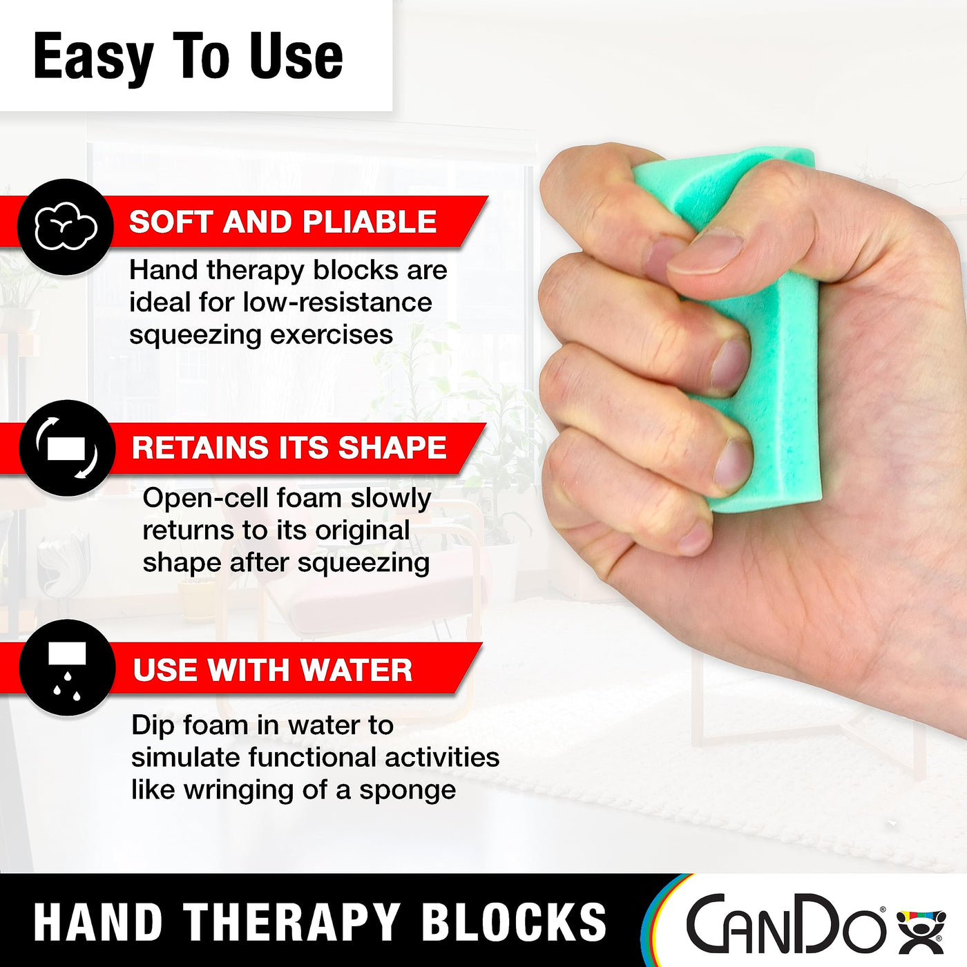 CanDo Hand Therapy Blocks - Grip Strengthening Foam Hand Exercise Tools for Physical Therapy, Arthritis, Carpal Tunnel, Stress Relief, Anxiety