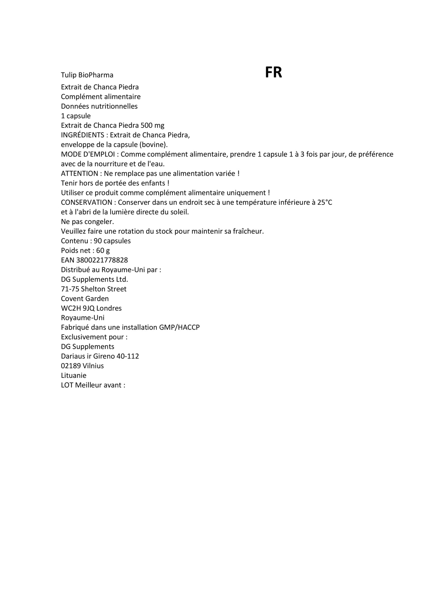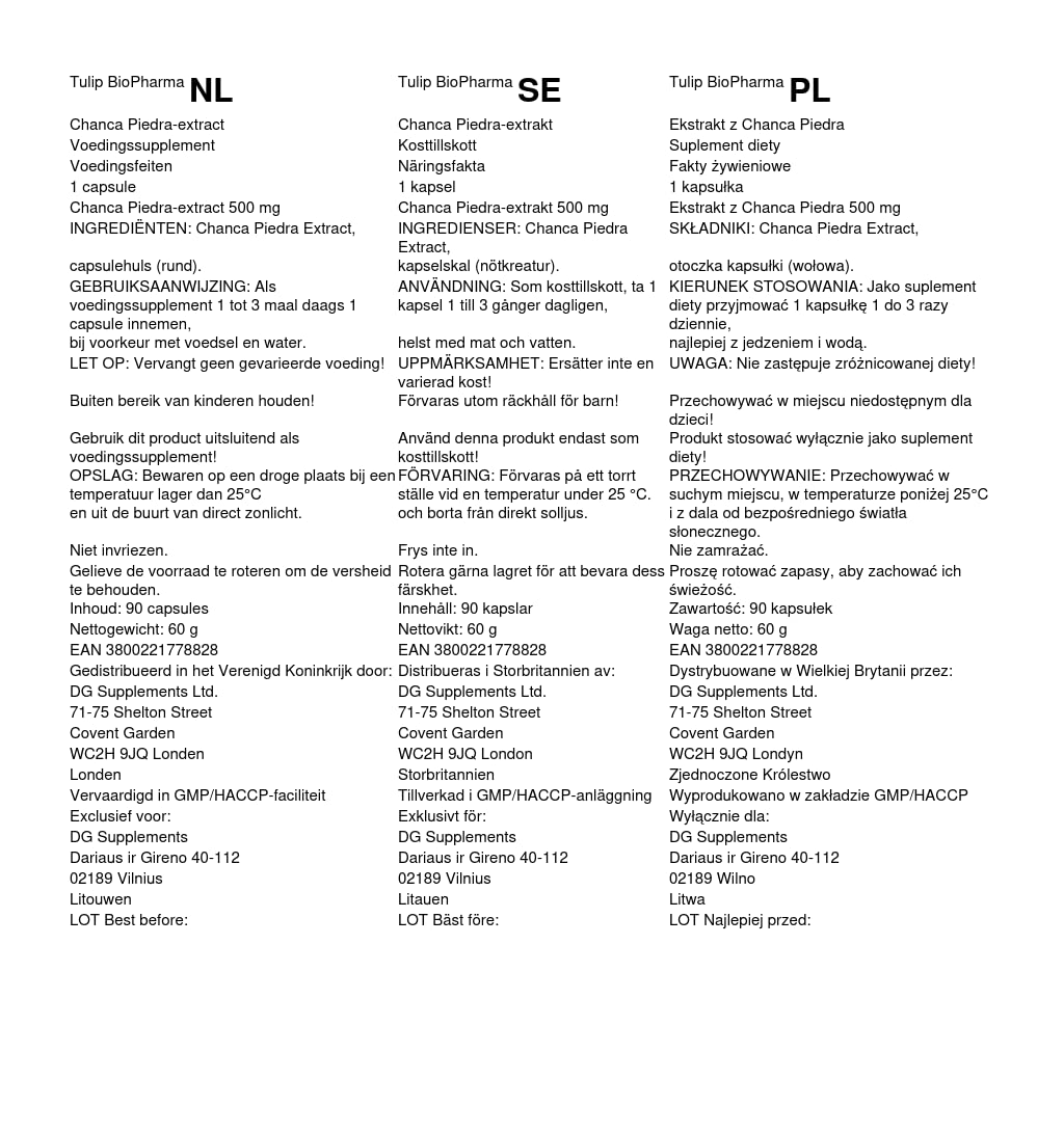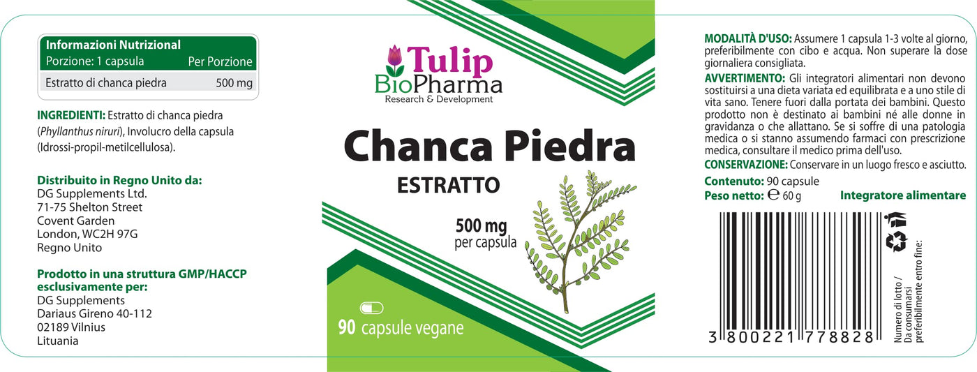 Product descriptions Chanca Piedra Extract 500mg 90 capsules, laboratory tested, Stone Breaker, Quebra Pedra, Phyllanthus Niruri Ingredients / Ingredients Chanca Piedra, hard gelatin capsules P.when('A').execute(function(A) { A.on('a:expander:toggle_description:toggle:collapse', function(data) { window.scroll(0, data.expander.$expander[0].offsetTop-100); }); }); Directions for use As a dietary supplement, take 2 capsules daily as required. Available in a pack size of 90 capsules. 1.5 month supply Warnings This product is not for children, pregnant or breastfeeding women suitable. If you have a medical condition or prescription If you are taking medication, please consult your doctor before taking it. More